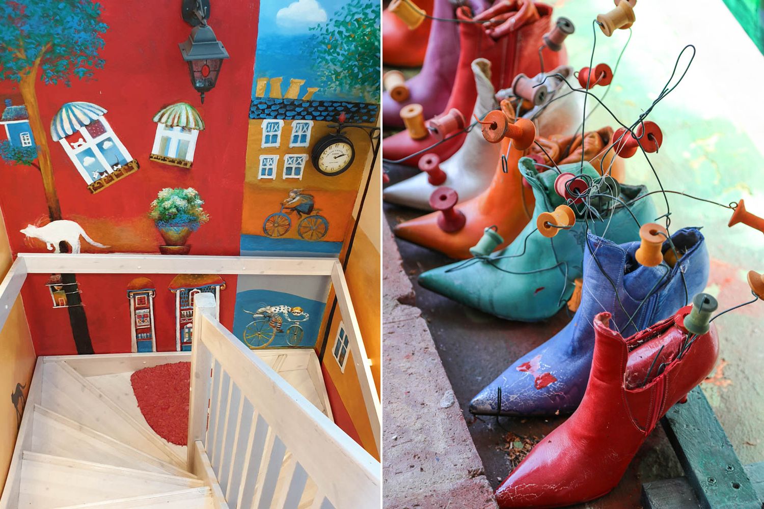 Talo on jo ulkopuolelta mykistävä näky. Se rikkoo räikeästi pelkistetyn arkkitehtuurin ja skandinaavisen väripaletin rajoja. Kun edessä aukeavat yhtäkkiä kaikki maailman sävyt, muodot ja kuvat, rakennusvalvontakulttuuriin tottunut ihminen ikään kuin häkeltyy. Miten tämä tällainen on edes mahdollista?