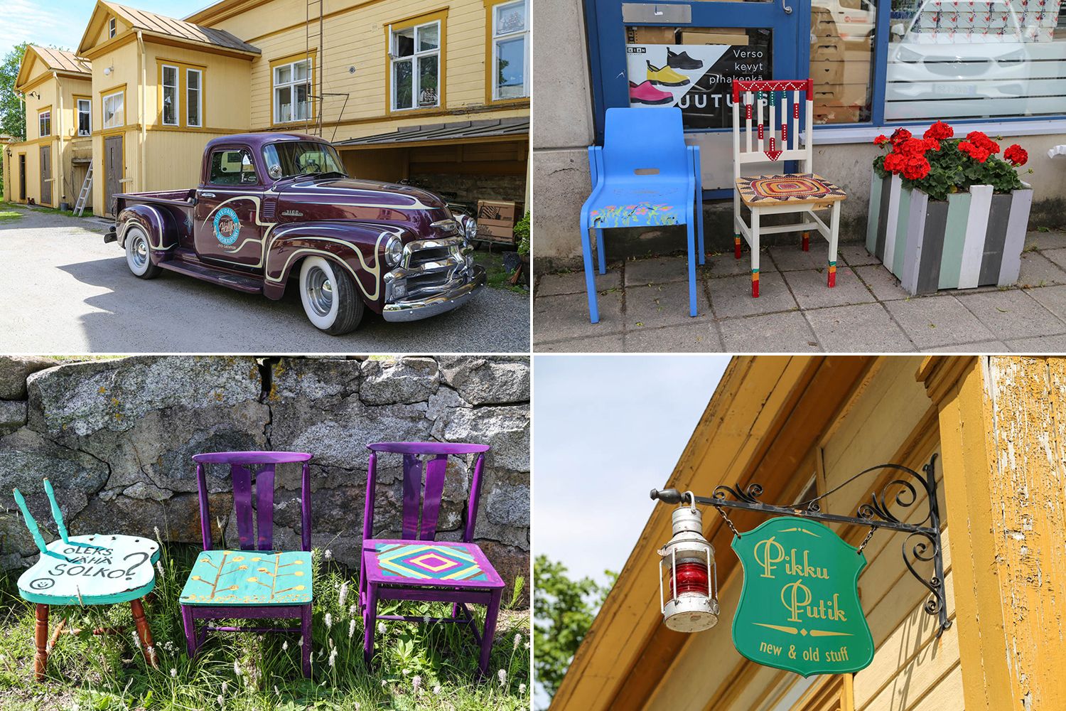 Taidekierroksen jälkeen kannattaa jatkaa värikylpyä Uudenkaupungin keskustassa, jossa ilahduttaa tänä vuonna Ilossi tualei -tempaus. Katujen varsilta voi bongata hauskasti maalattuja tuoleja, jotka ovat Anne Kuusiston, Birgit Ilmasen, Hilkka Knaapisen ja Vuokko Tyvin käsialaa.
