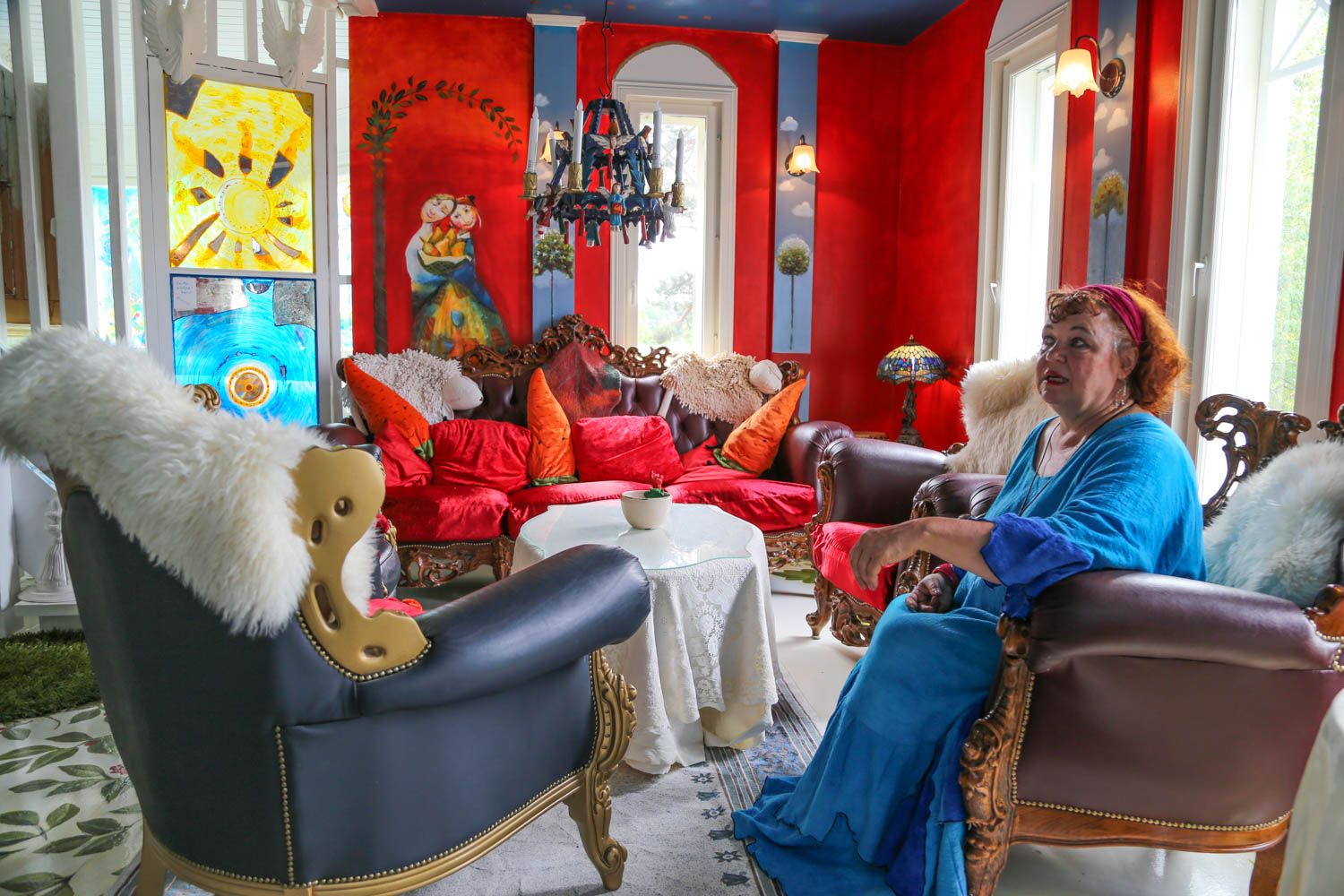Hämmästyttävintä on, että paikka tosiaan on myös Raijan ja Pentin koti. Miten ihmeessä joku voi asua tällaisen väripaljouden keskellä? Eikö iske migreeni ja ahdistus?