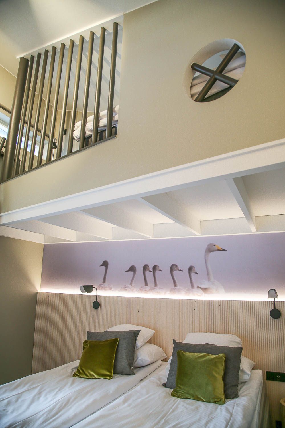 Majoituimme Timpan kanssa yhteen Break Sokos Hotel Bomban uusituista perhehuoneista, jotka valmistuivat kesällä. Vaaleansävyisissä huoneissa on korkeutta niin, että yläkerran parvella nukkuu kaksi yöpyjää ja alhaalla toiset kaksi. Portaat parvelle ovat sen verran jyrkät, että yläpedit sopivat ehkä paremmin isommille lapsille.