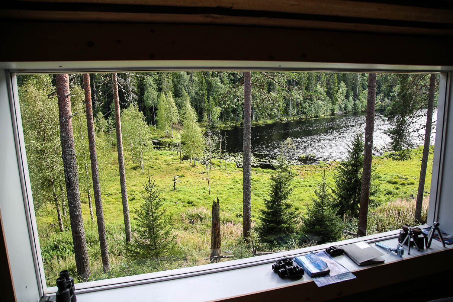 Kun fillarit oli palautettu, alkoi reissun odotetuin osuus. Pakkasimme autoon lämmintä vaatetta ja evästä, ja ajoimme tunnin siivun Lieksaan. Loppumatkasta tie kulki korkean hiekkaharjun päällä ja kiemurteli metsän poikki komealle hirsituvalle. Olimme sopineet etukäteen eräopas Eero Kortelaisen kanssa, että pääsemme yöksi kuvauskojuun metsän villieläimiä bongaamaan. Viime viikolla oli viimeinen hetki ennen metsästyskauden käynnistymistä.
