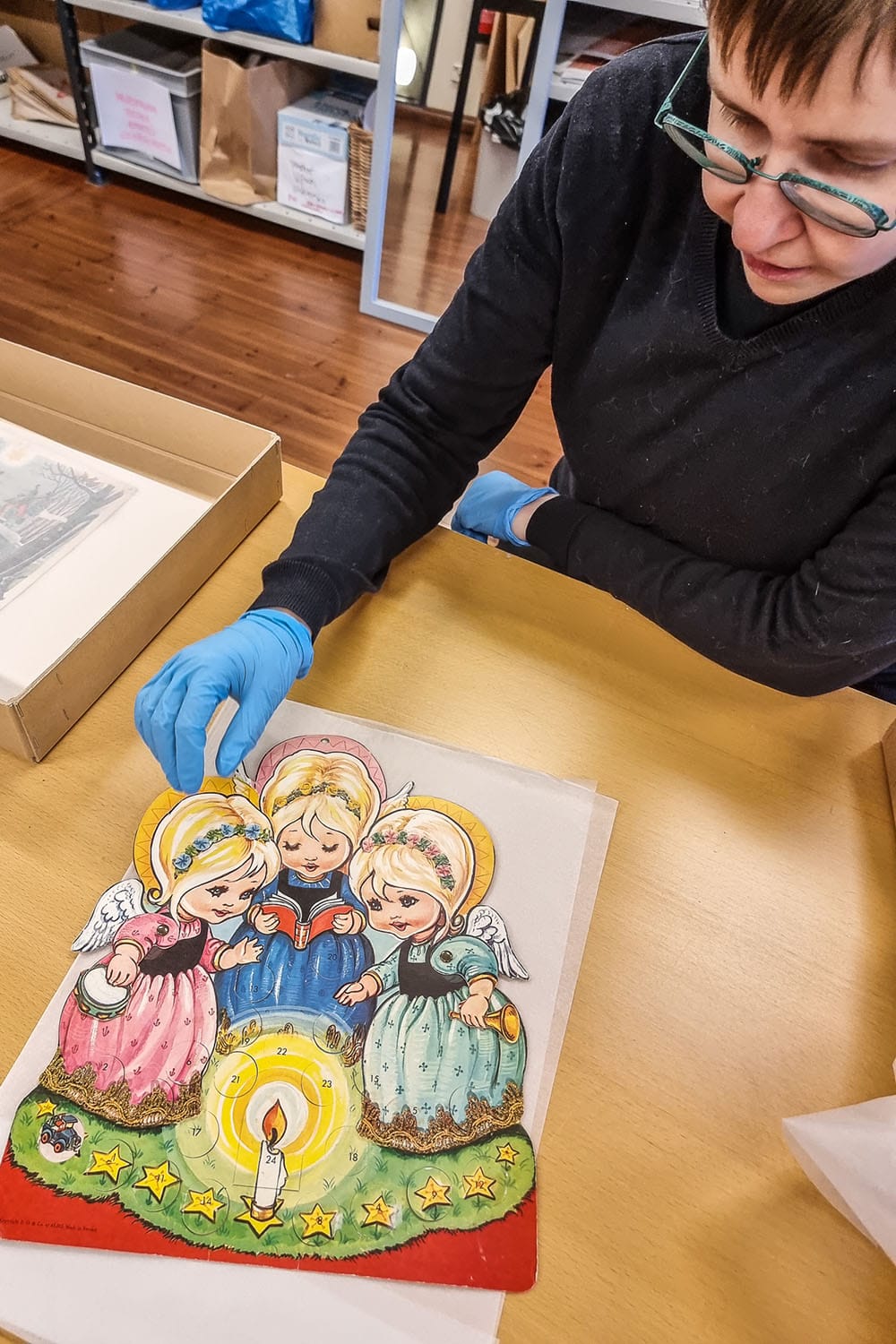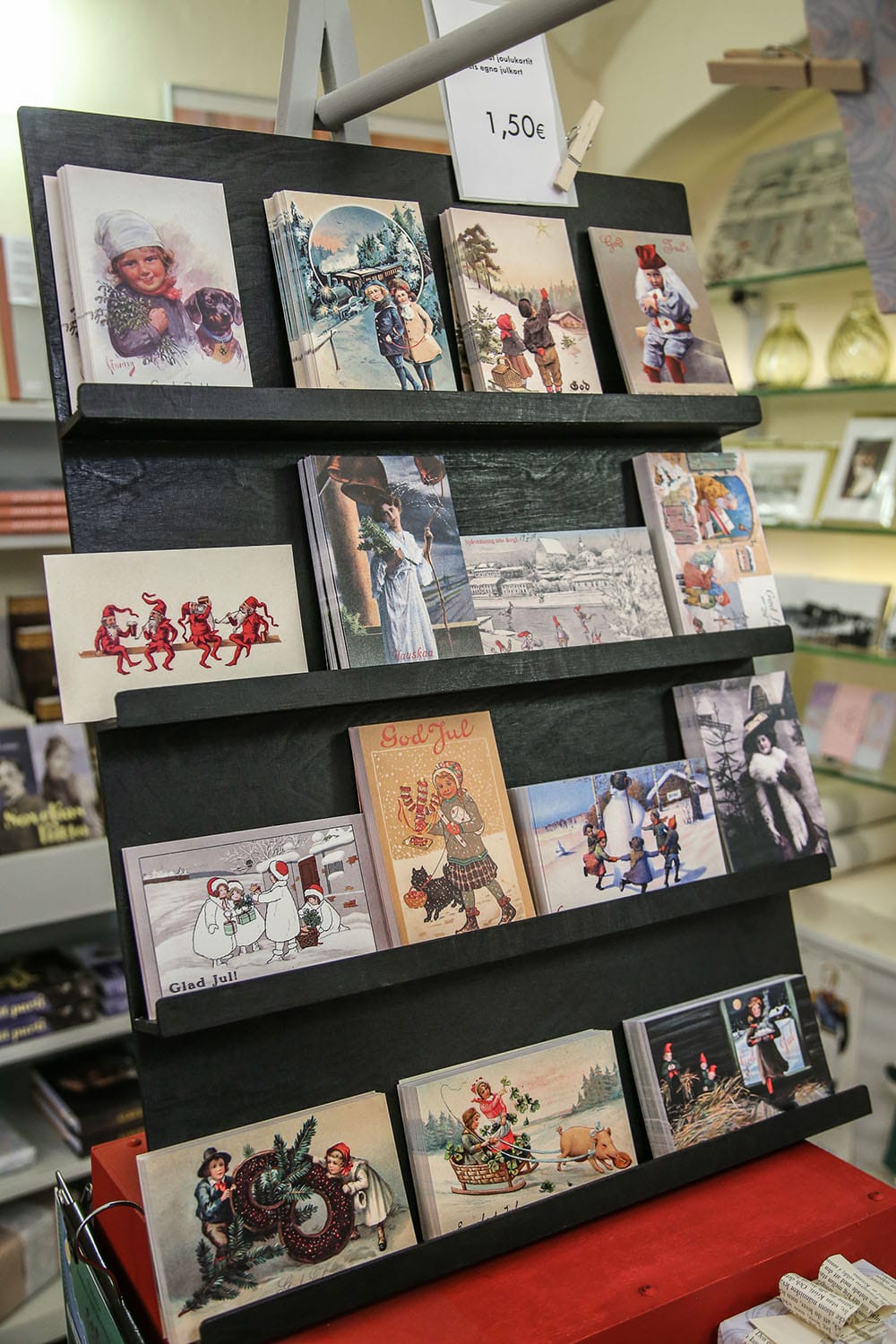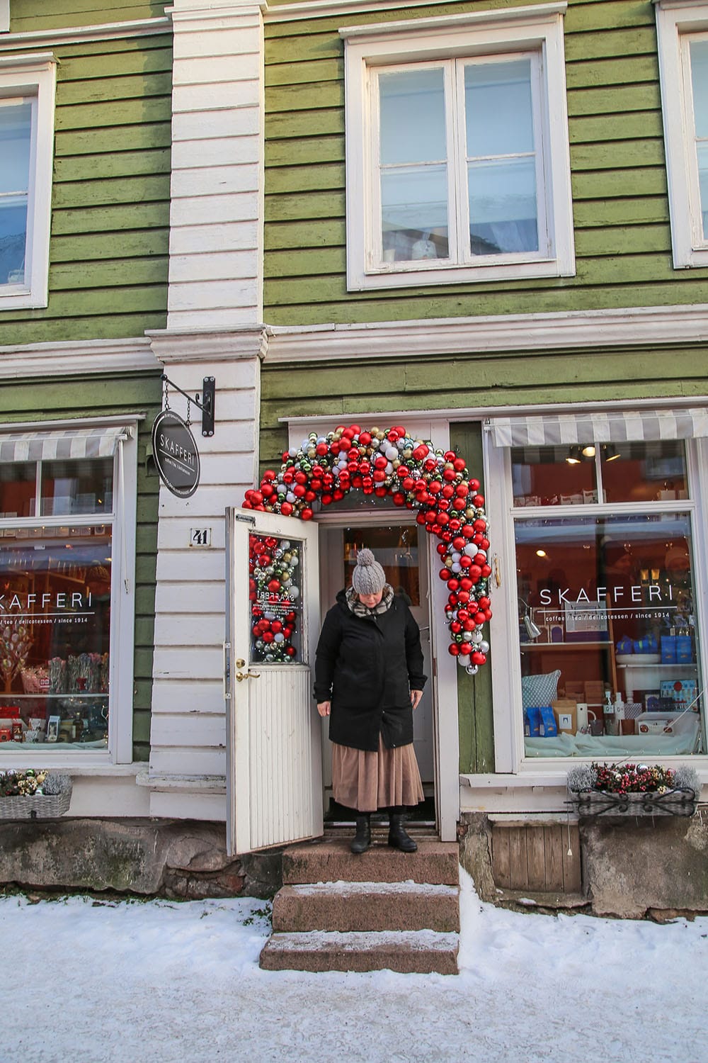 Nolottaa tunnustaa, että kävin Raatihuoneentorin laidalla sijaitsevassa Porvoon museossa ensimmäistä kertaa vasta nyt. Tai no, oikeastaan Holmin talossa, jossa voi nähdä, miten 1700-luvun vauraassa kauppiaskodissa ennen elettiin. Täällä on parhaillaan myös jouluaiheinen näyttely, joka kannattaa katsastaa. Museon varastosta löytyi laatikollinen vanhoja joulukalentereita, joita pääsimme Annin kanssa tutkimaan. Porvoon Museon esineistö on muutenkin kiehtova aikamatka: tallessa on 127 vuoden ajalta kertyneitä huonekaluja, tekstiilejä, astioita, kelloja ja työkaluja, joita on huollettava säännöllisesti. Ja koska Porvoo on ollut aina taiteilijoiden kaupunki, museosta löytyy teoksia Ville Vallgrenista Albert Edelfeltiin.