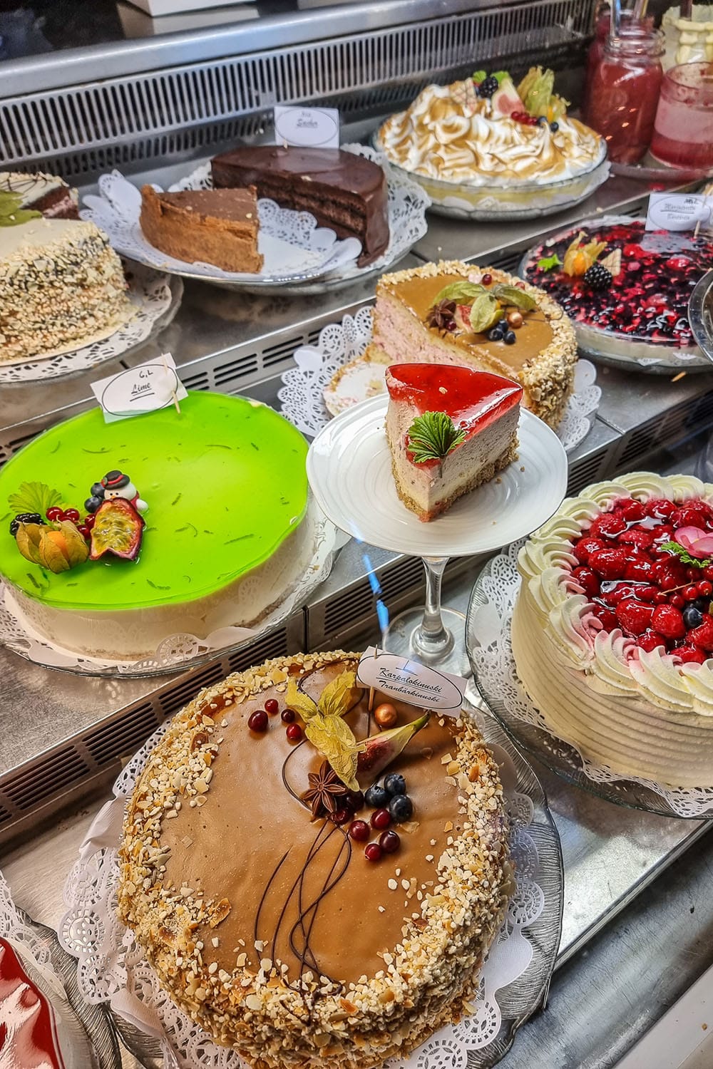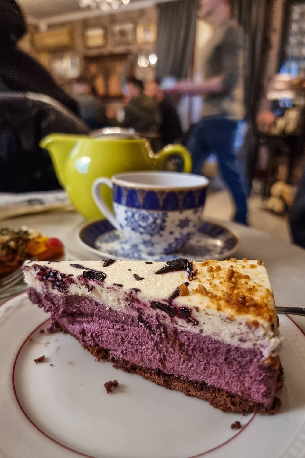 Olen aina tykännyt Porvoon kahviloista, joissa on yleensä laaja valikoima leivonnaisia ja hyvät kahvit/teet. Raatihuoneentorin laidalla sijaitsevasta Cafe Fannysta saa meheviä runebergintorttuja, ja Porvoon paahtimon hämyisä tunnelma sopii parhaiten talviaikaan. Tällä kertaa kävimme lämmittelemässä teekupposen ja juustokakkujen äärellä tee- ja kahvihuone Helmessä, jossa tuntuu aina siltä kuin hyppäisi entisaikojen Pariisiin. Ensimmäistä kertaa vierailin sen sijaan Café Cabriolessa, jonne meillä oli onneksi pöytävaraus: suosittu paikka oli viikonloppuna tupaten täynnä. Loistokahvit ja valtava kakkuvalikoima vitriinissä täälläkin.