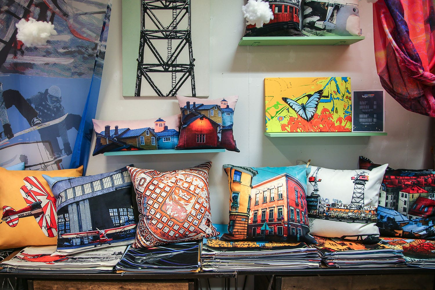 Taiga Colors (Välikatu 5). Helsingistä Porvooseen muuttanut suomalainen design-kauppa, jossa on Jutta Kuuren suunnittelemia värikkäitä tekstiilejä, koruja ja kodintarvikkeita.
