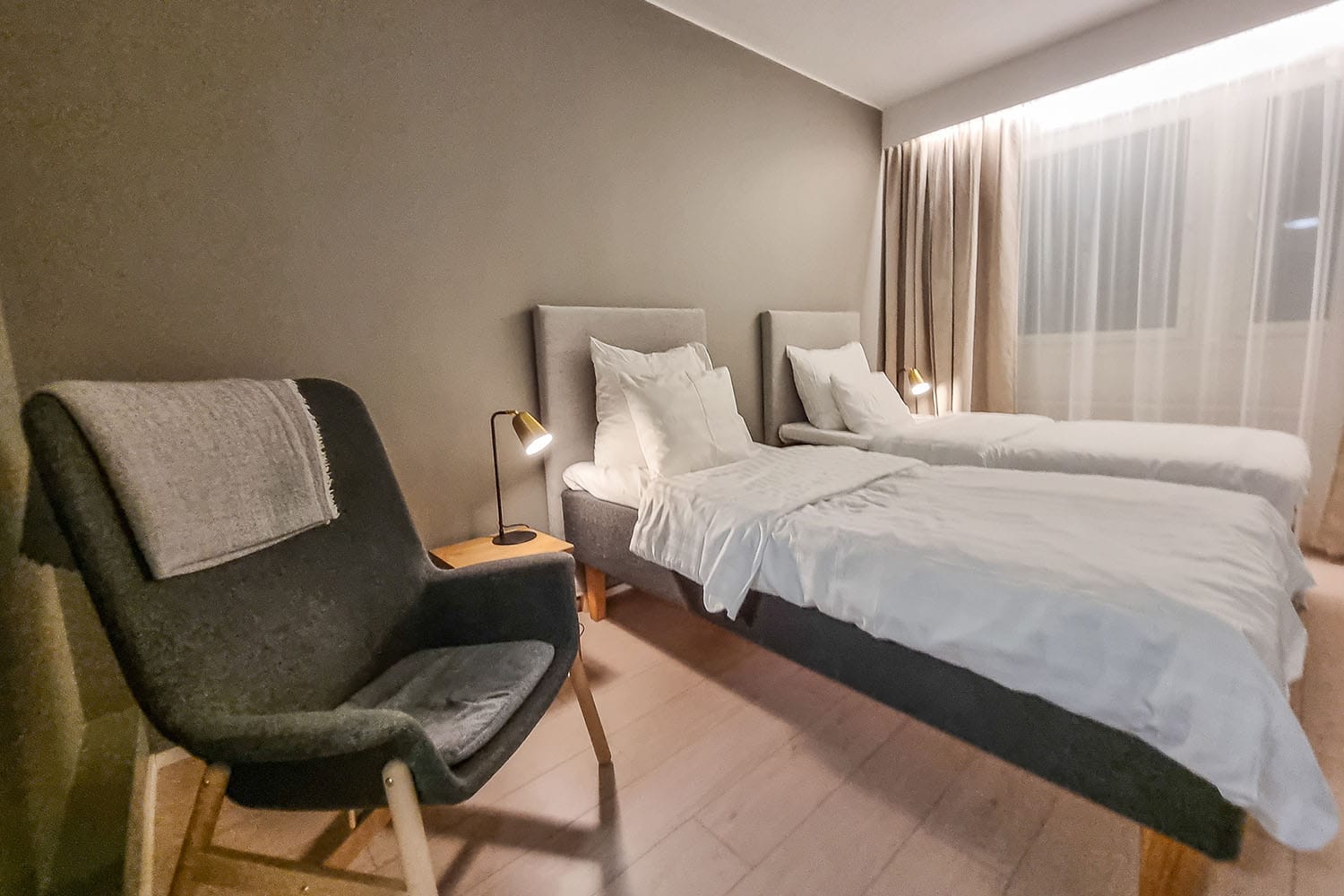 Majoituimme Annin kanssa Comfort Twn -huoneeseen, jonka hinta pyörii tähän aikaan vuodesta 148 euron tietämillä (Basic Twn -huoneen saa noin 130 eurolla). Huoneessa oli jääkaappi, vedenkeitin, kahvit ja teet, telkkari ja wifi-yhteys. Huoneiden hintaan kuuluu hyvä perusaamiainen sekä sauna (naisten ja miesten saunavuoroilla).