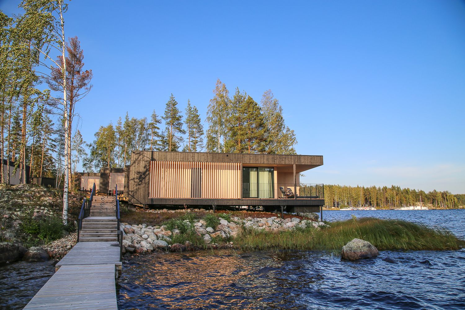 Tykkäsimme siitä, että rakennusten ympärille on jätetty luonnollista metsänpohjaa eikä niemenkärkeä ole lähdetty tuunaamaan liikaa.