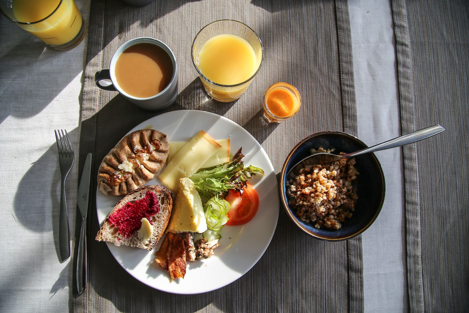 Sahanlahti Resortin aamiainen on legenda, johon en varmaan kyllästy ikinä. Padassa hautunut uunipuuro/ohratto, karjalanpiirakat, savumuikut ja hölskykurkut ovat lemppareitani, joita poimin lautaselle joka kerta. Buffet-pöydästä tarjoiltava aamiainen pitää sisällään kaikki ne elementit, joista aamiaisella tykkään: pitää olla tuhtia ja täyteläistä, mutta vastapainoksi myös raikasta ja rapsakkaa. Elsanrannan villoihin voi tilata aamiaisen lisämaksusta.
