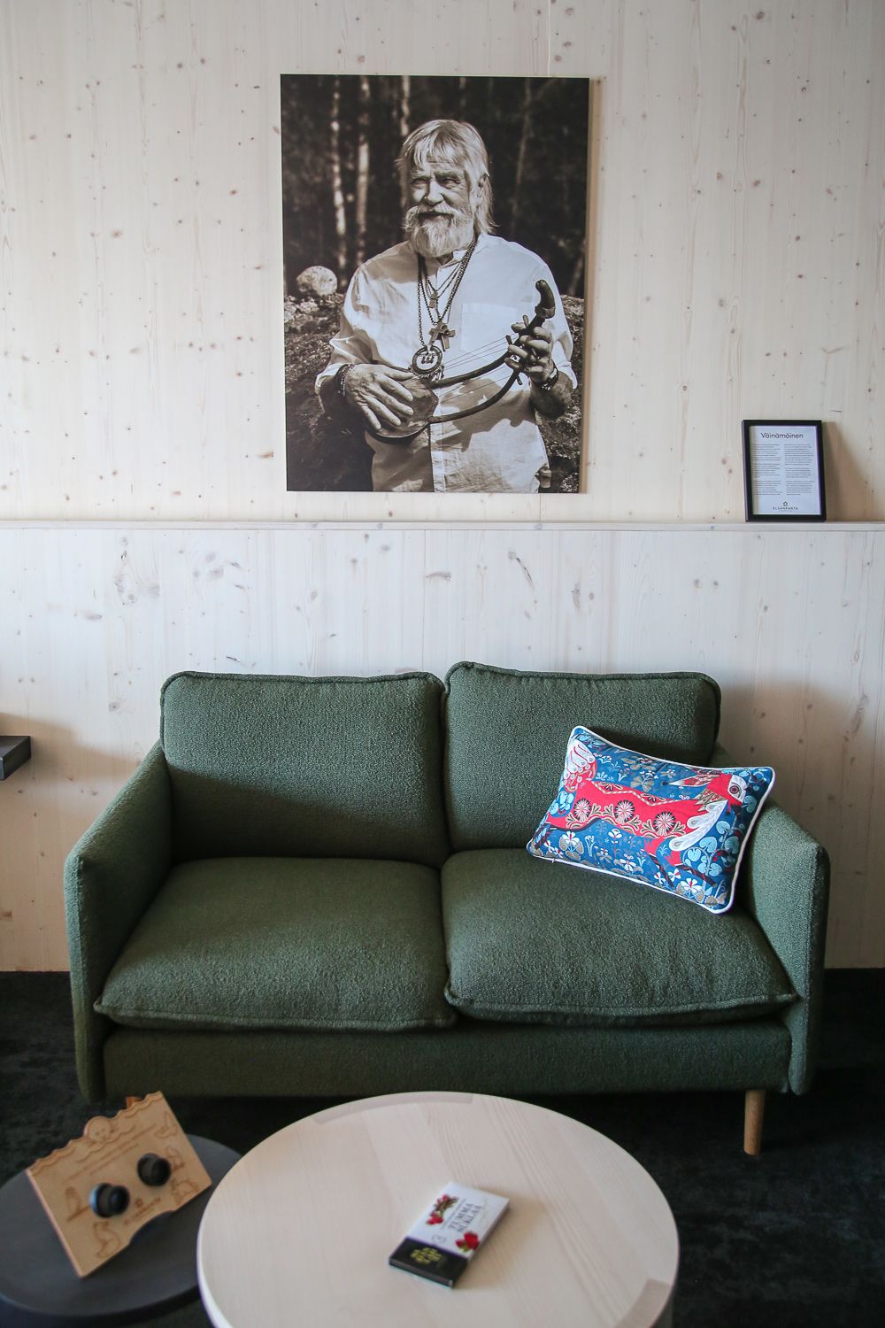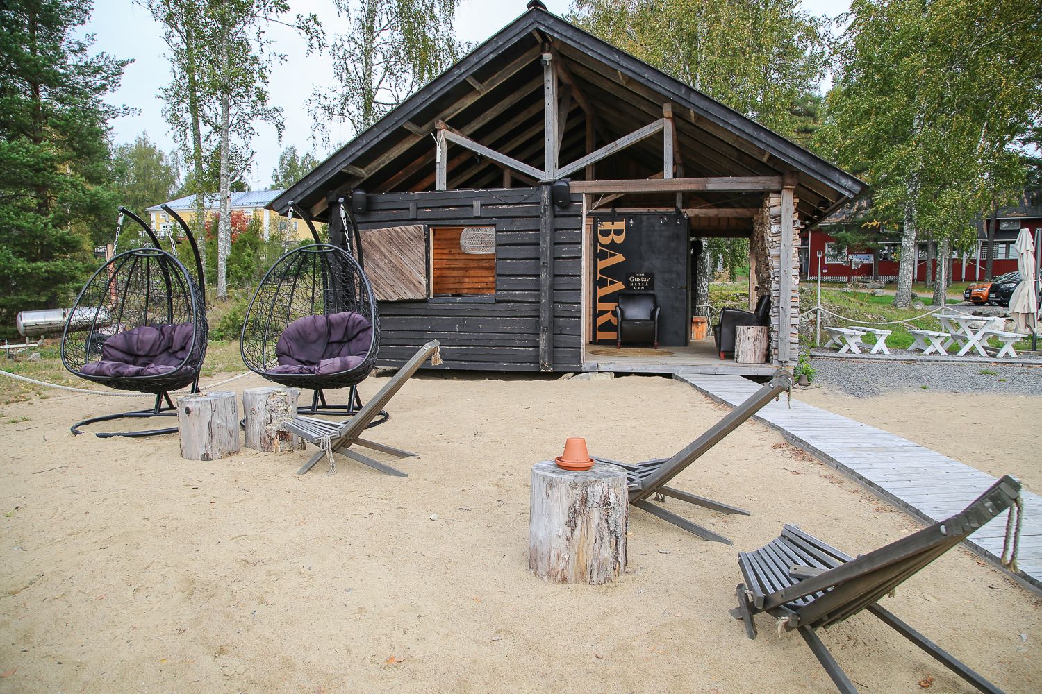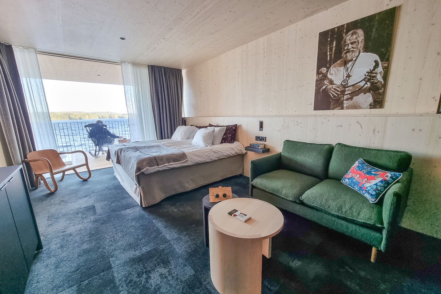 Kannattaa majoitusta varattaessa muuten kysyä, onko mahdollisuus päästä johonkin järven kupeessa olevaan villaan. Jokaisella villalla on oma nimensä, joka on saanut innoituksensa Kalevalasta. Me yövyimme esimerkiksi Väinämöisessä, joka oli tämä laiturin kupeessa oleva rakennus. Laiturin päästä pääsee myös uimaan.