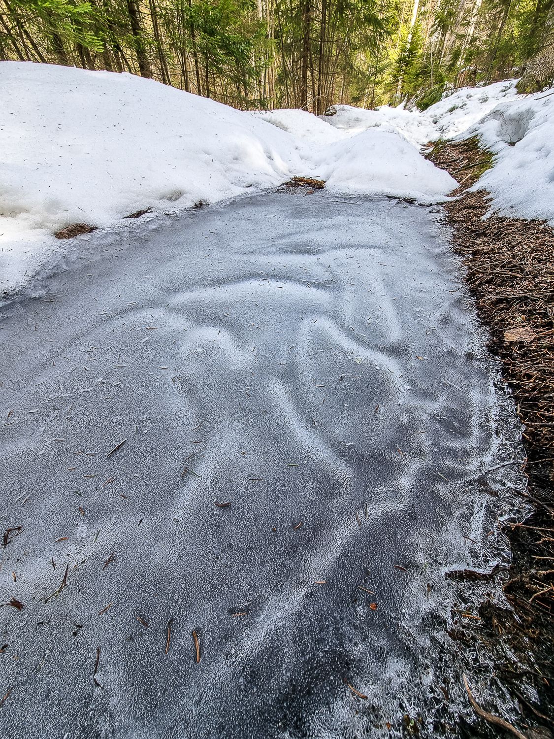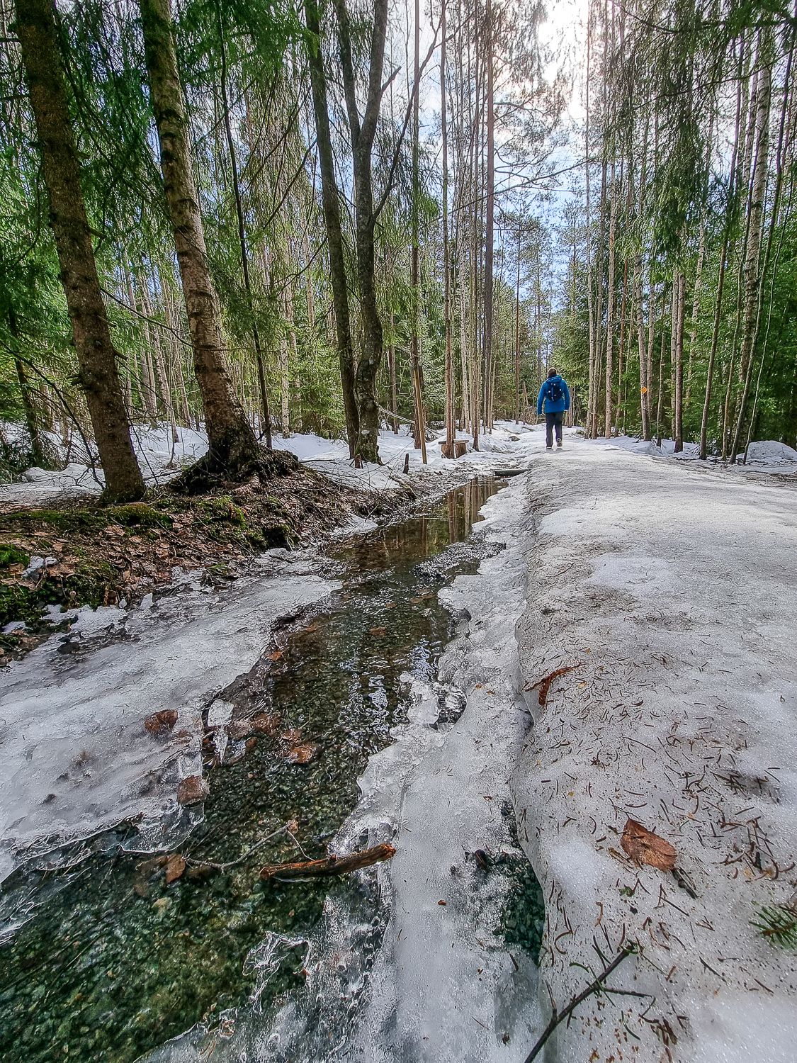 Ihan aluksi: jos metsäpatikointi täällä eteläisessä Suomessa kiinnostaa, tee se heti. Olosuhteet ovat nimittäin juuri nyt täydelliset: jäiset polut alkavat hiukan pehmetä ja osittain sulaakin, mutta maa on yhä roudassa. Se tarkoittaa sitä, ettei vielä tarvitse vetää jalkaan kumisaappaita ja tarpoa jalat kurassa.