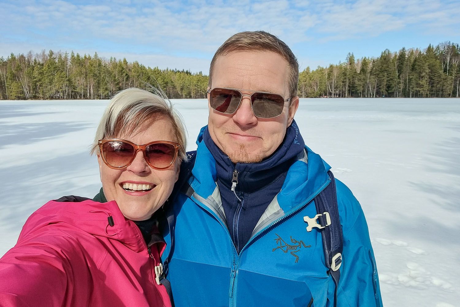 Pääsiäiseksi listalla oli kaikenlaista hommaa, mutta nyt näyttää siltä, että puolet jää tekemättä. Syytän säätä: kun aurinko mollottaa täydeltä taivaalta ja mittari kipuaa 8 asteeseen, niin tekee mieli rynnätä koko ajan ulos. Eilen hörppäistiin Timpan kanssa aamukahvit ja ajeltiin vaihteeksi Sipoonkorven eteläpäähän, josta löytyikin tosi monipuolinen reitti, pitkospuilla ympäröity järvi ja yksi metsälampi.