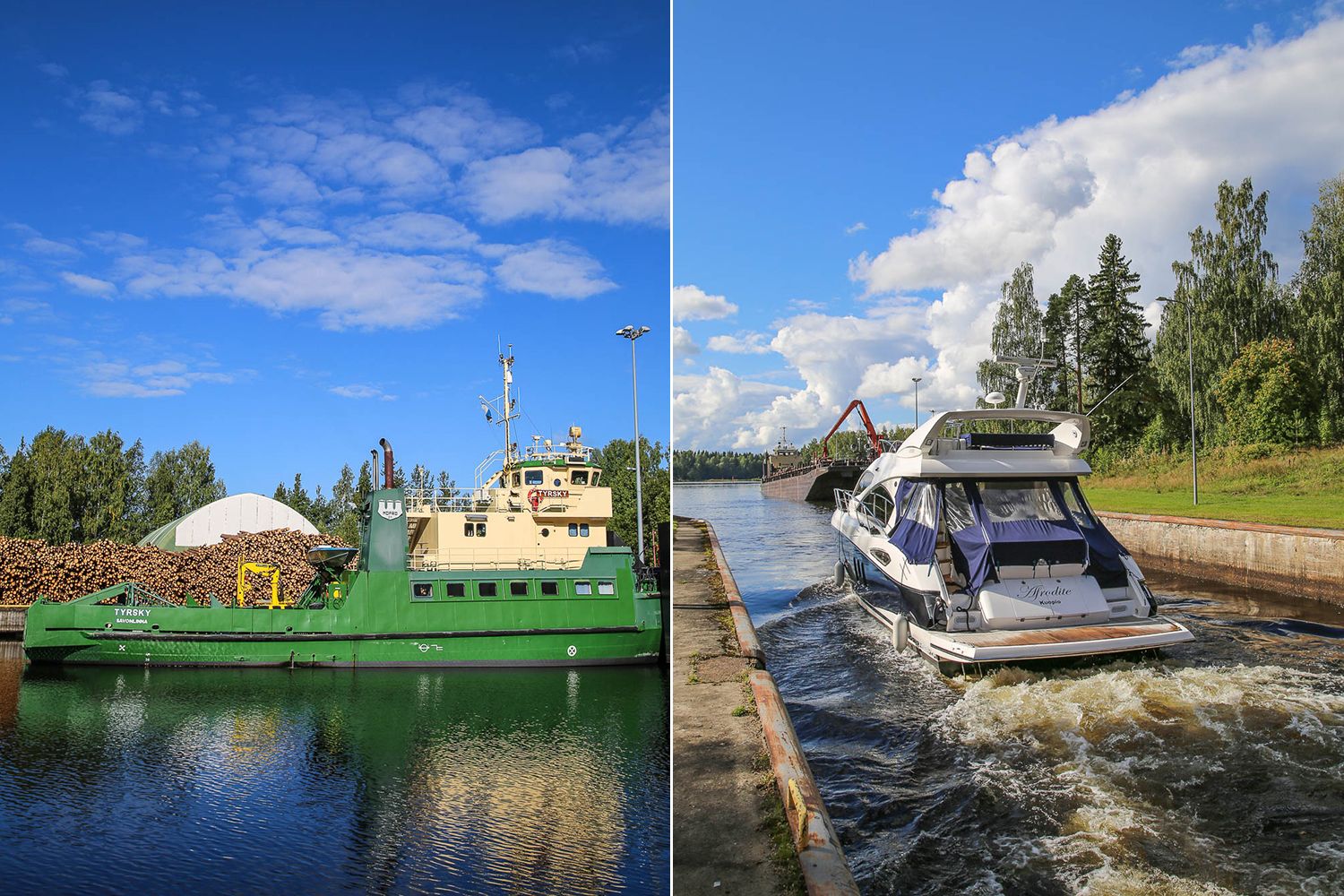 Meren äärellä kasvaneelle tukkien uitto ja kanavien sulkuportit ovat mystinen maailma. Ihmetyksen saattoi meistäkin havaita, kun seisoimme Annin kanssa suut selällään Taipaleen kanavan liikennettä seuraamassa. 564 metrin mittaisen kanavan toisessa päässä oli meneillään tukkien lastaus proomun kyytiin. Sulkuportitkin sattuivat avautumaan juuri sopivasti niin, että näimme huviveneen lipuvan tasausaltaan läpi.