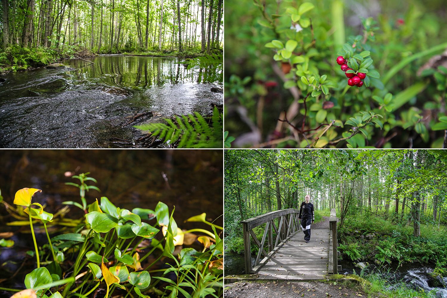Varkauden monimuotoinen maasto yllätti. Vesistön ja saarten ympäröimästä kaupungista ei tarvitse ajella kilometritolkulla luontoreittejä etsimään. Keskustan kupeessa on rauhallinen Kämärinsaari, josta kulkee kolmen kilometrin mittainen luontopolku solisevien purojen ja lehtometsien halki Kämärin uimarantaan. En tiedä, kuinka vilkasta täällä on kesäaikaan, mutta ainakin nyt saimme talsia reittiä kaikessa rauhassa.