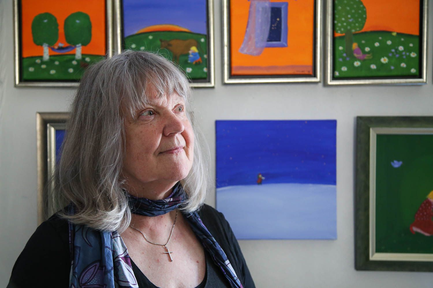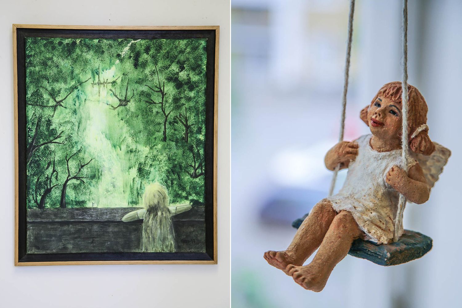 Marja-Muusan tarina kosketti erityisesti. Reilut kymmenen vuotta sitten hän menetti kuulonsa ja siinä samassa uhkasi mennä ymmärrettävästä syystä elämänhalukin. Kuuloa ei pystytty pelastamaan, mutta Marja-Muusalle onnistuttiin asentamaan leikkauksessa kuulolaite, joka auttaa arjessa. Jotain mieletöntä periksiantamattomuutta tässä naisessa on. Se näkyy jo hänen teoksissaan, jotka erottuvat vahvoilla väreillä ja satumaailmoilla. Marja-Muusa pitää Väinölässä myös nukketeatteriesityksiä.