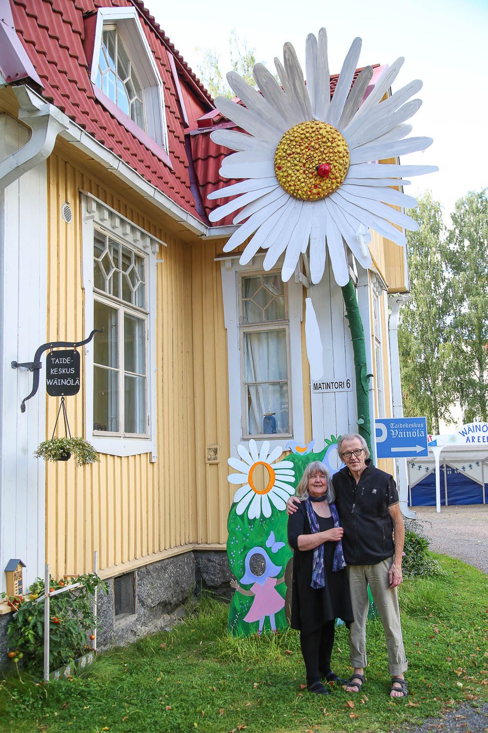 Varkauden keskustassa sijaitseva iloisen värinen puutalo herättää toki jo itsessään huomion. Sen edustalla komeilee valtava päivänkakkara. Vielä rohkeammalla pensselillä on maalattu sisätiloissa, jossa on huima kokoelma naivistista taidetta ja säännöllisesti vaihtuvia näyttelyjä. Isäntäparin, Marja-Muusa ja Timo Hämäläisen asennetta ihailen: kun pariskunta järjesti ensimmäisen naivistinäyttelyn kesällä 2012, epäilijöitä riitti. Kaksikolla oli kuitenkin vahva visio: Varkaus kaipasi iloa tehtaiden sulkemisen ja työttömyyden keskelle. Nyt Naivistit Varkaudessa on kasvanut laajaksi kesätapahtumaksi, jossa nähtiin kuluneena kesänäkin 60 taiteilijan töitä. Talossa toimii myös kehystämö, taidetarvikekauppa ja kahvila. Taidekierroksia tekevä Kalakukko-katujuna ottaa kyytiinsä vain kesäisin, mutta Väinölä on auki ympäri vuoden.