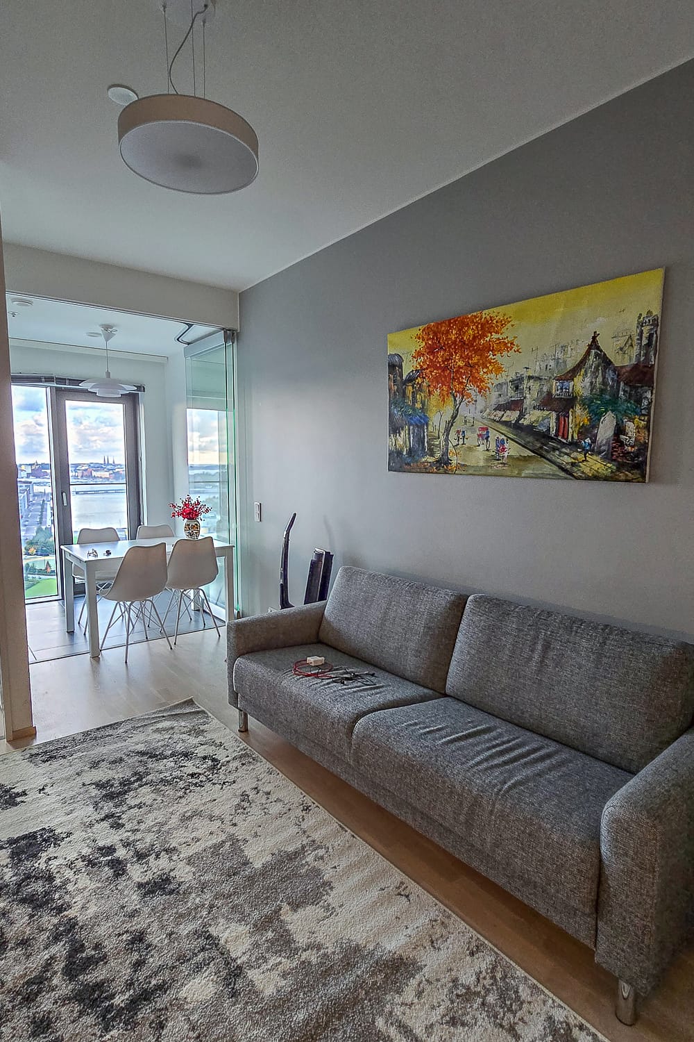Olemme vuokranneet loma-asuntoja niin paljon vuosien varrella, että näen yleensä aika äkkiä, onko kyseessä oikeasti jonkun koti vai sijoitusasunto. Kalasataman kaksiossa ei todennäköisesti asu kukaan. Jokin kodikkuus puuttui, vaikka kaapeissa olikin kaikki tarvittavat astiat ja kylppärissä pyykinpesuaineet. Asunnon pohjahan on ihan hyvä, mutta jotain ilmeikkyyttä se olisi kaivannut.