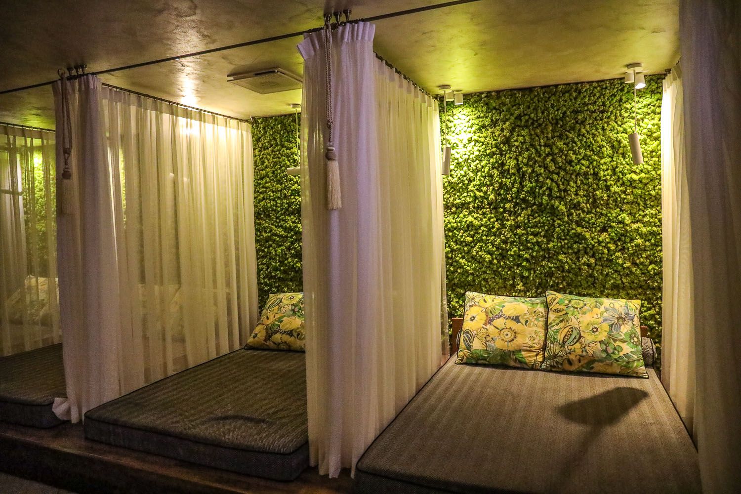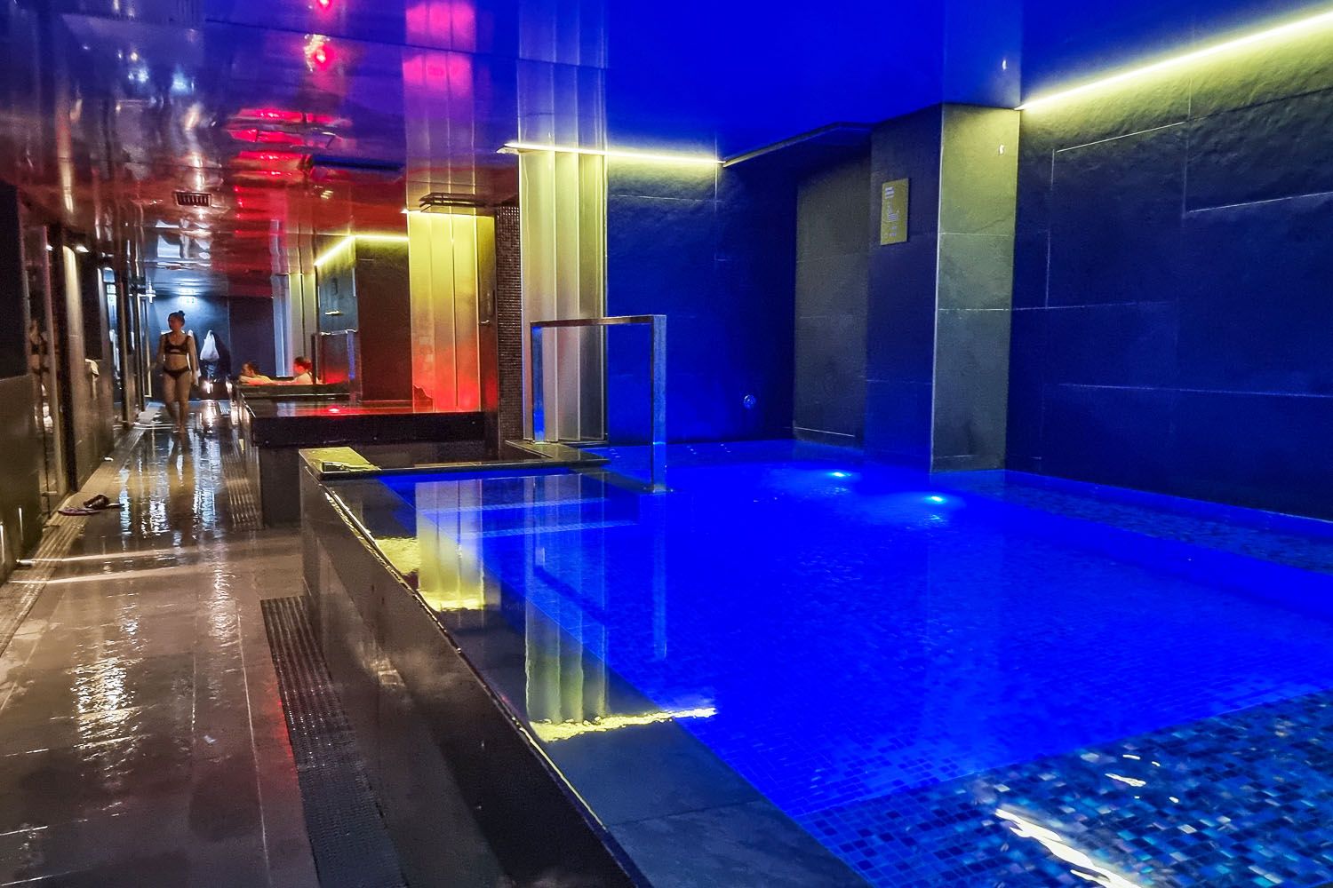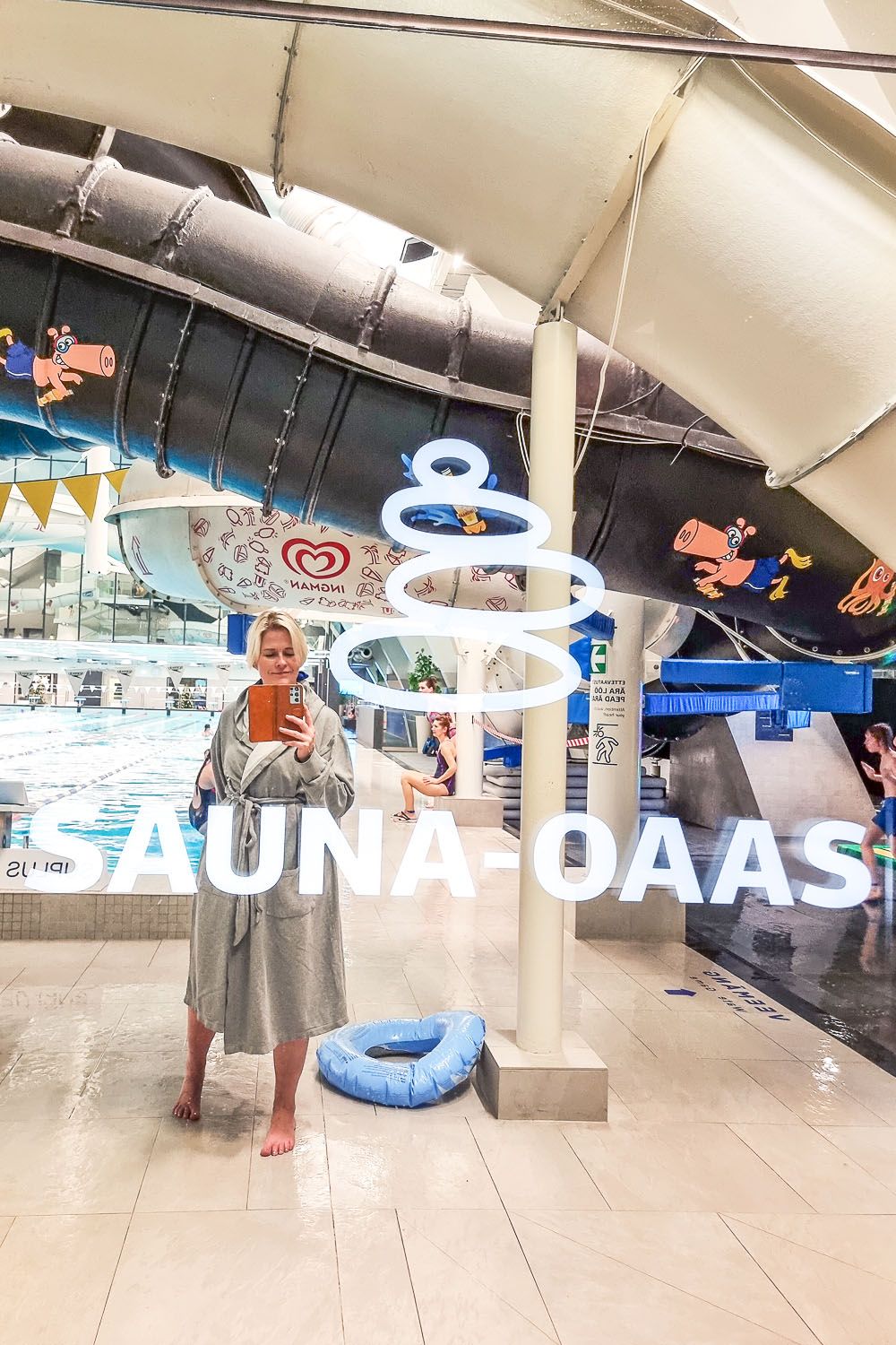 Jos kaipaat rentouttavampaa lillumista, kannattaa suunnata suosiolla heti Sauna Oasikseen, jonne pääsee arkisin 27 eurolla ja viikonloppuisin 34 eurolla (maksullinen myös hotellin vieraille). Suljettujen ovien takana sijaitsevassa rauhoittava spa blokkaa hyvin vesipuiston metelin, ja värimaailmakin on hämyisämpi ja rauhoittavampi. Tarjolla on useampi pieni allas, joista varsinkin japanilainen kylpy (40 C) ja kuuma lähde (35 C) rentouttivat lihaksia ihanasti. Viidestä erilaisesta saunasta lemppariksi nousi 50-asteinen trooppinen sauna, joka on on sisustettu viherkasveilla ja viidakon äänimaailmalla.