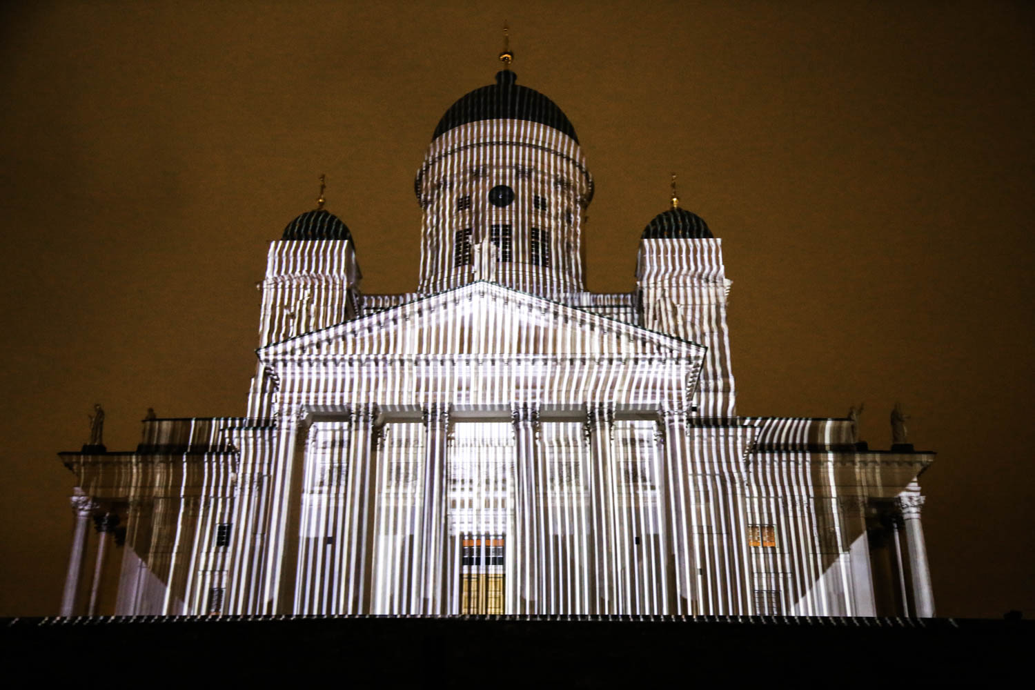 Tuomiokirkon Konstellaatio-valoteoksen on tänä vuonna suunnitellut unkarilainen László Bordos. Musiikki: Mika Vainio.