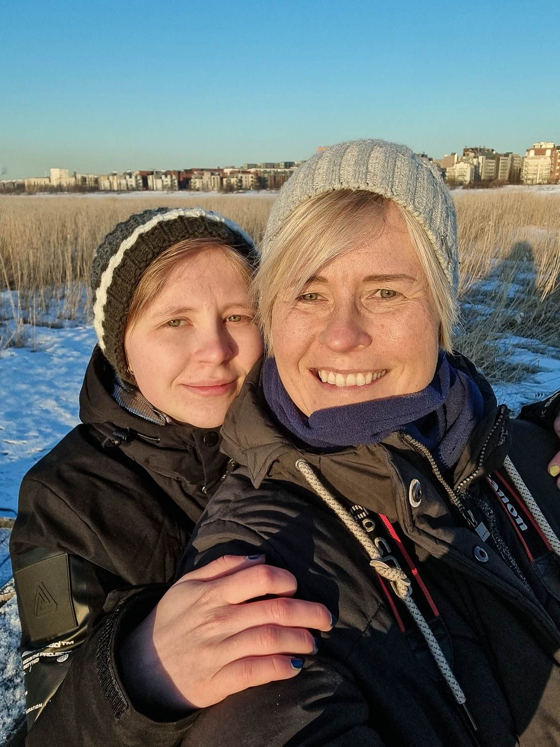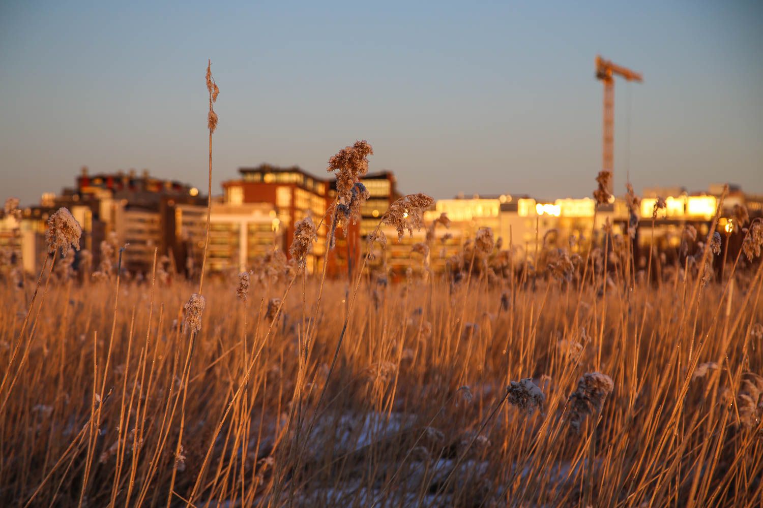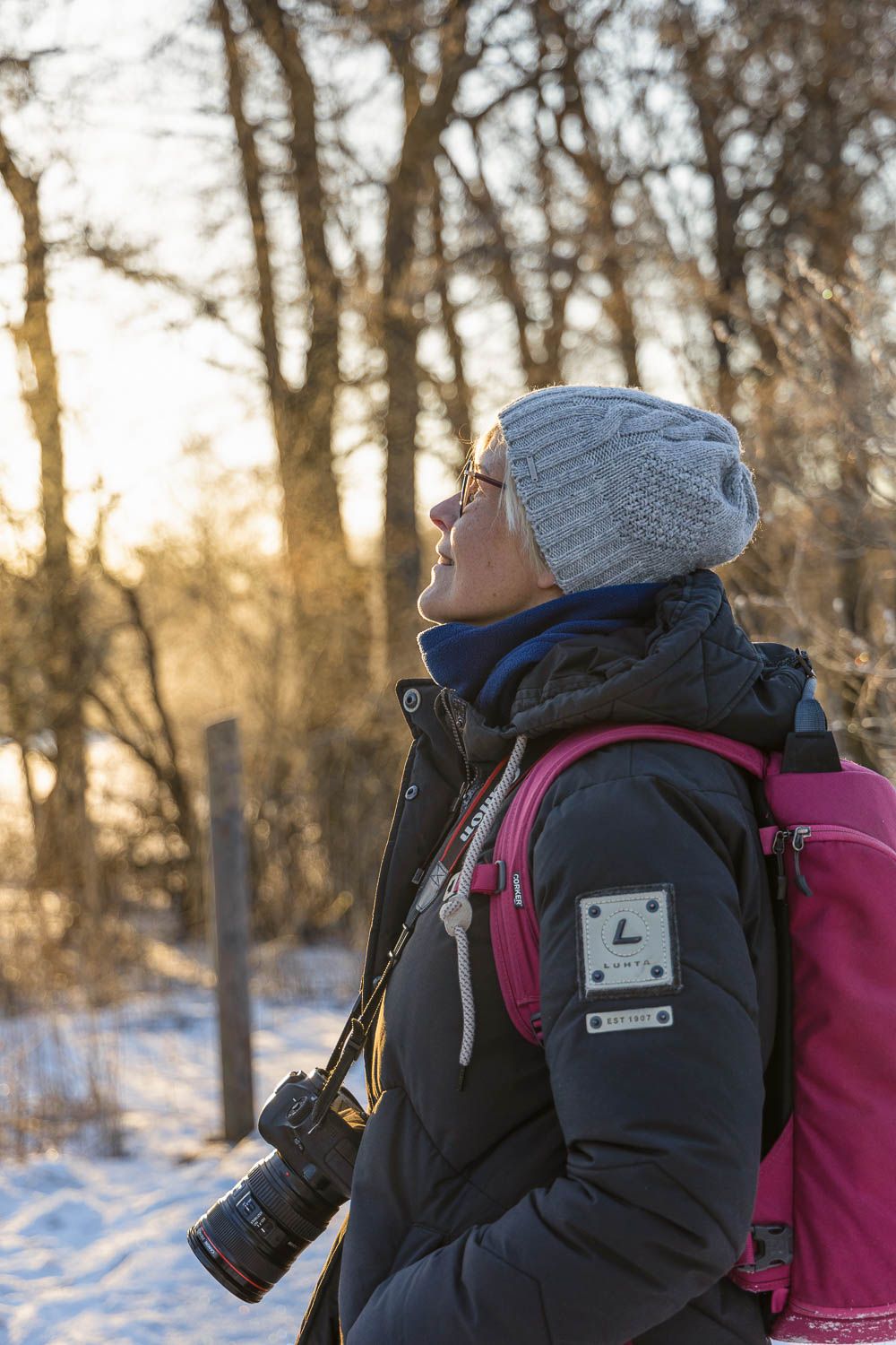 Perjantaina heräämme klo 5:40, pakkaamme kamerat reppuihin ja pukeudumme lämpimästi. Ulkona on kahdeksan astetta pakkasta. Ehdimme Helsingin Lammassaaren pitkospuille juuri, kun aurinko on nousemassa. Taivaanranta hehkuu kaislikon takana oranssinpunaisena, pesintäpuuhissa olevat tirpat laulavat ruovikossa. Taustalla kohisee vaimea aamuruuhka. Siellä ne ajavat työpaikoilleen, muut suorittajat. Meillä ei ole kiire.