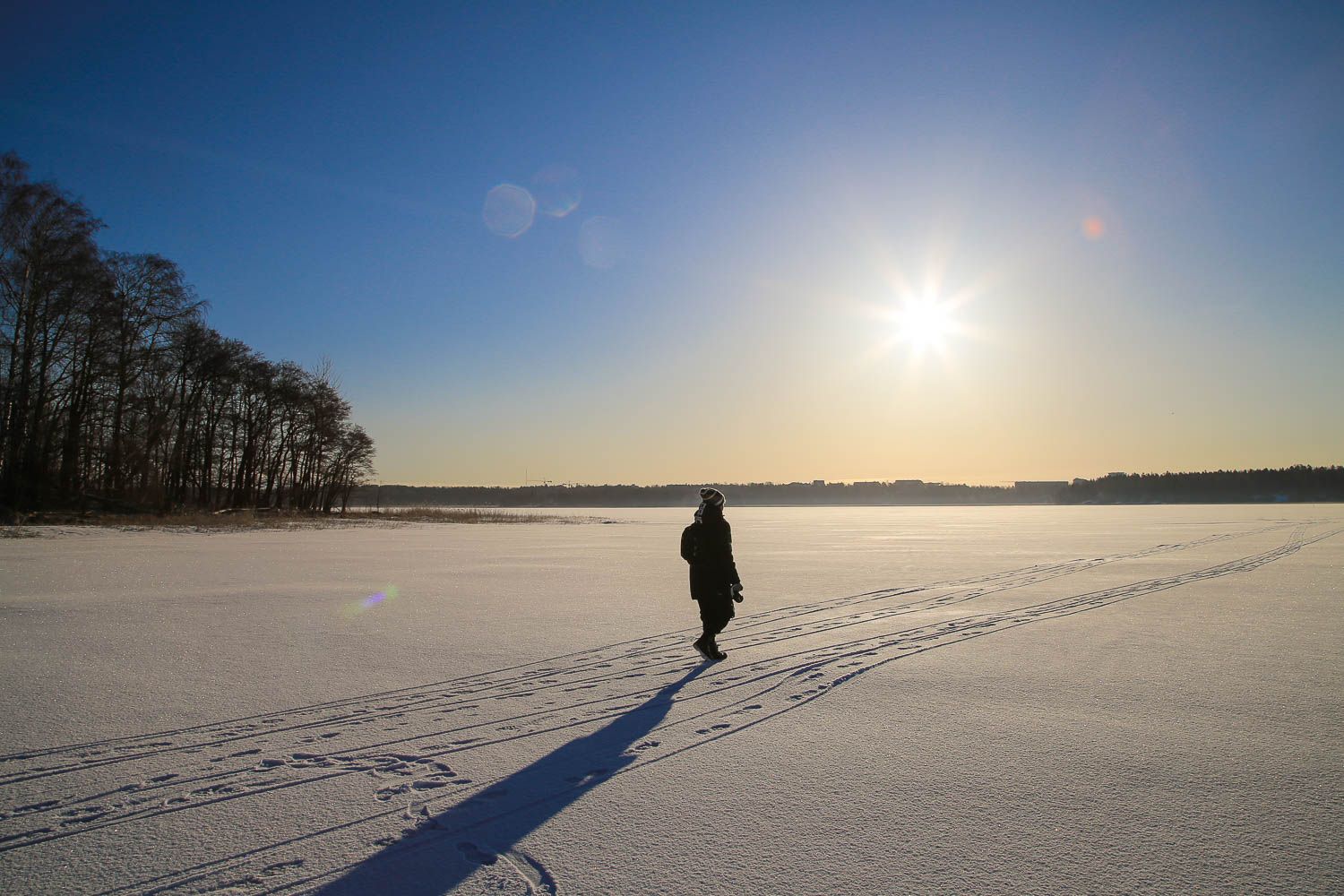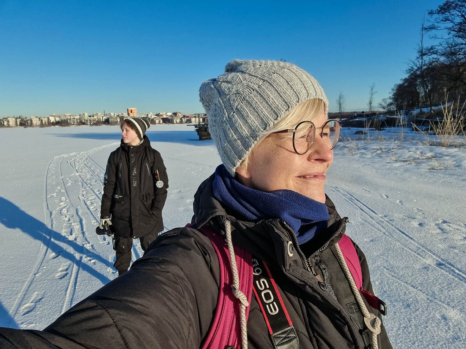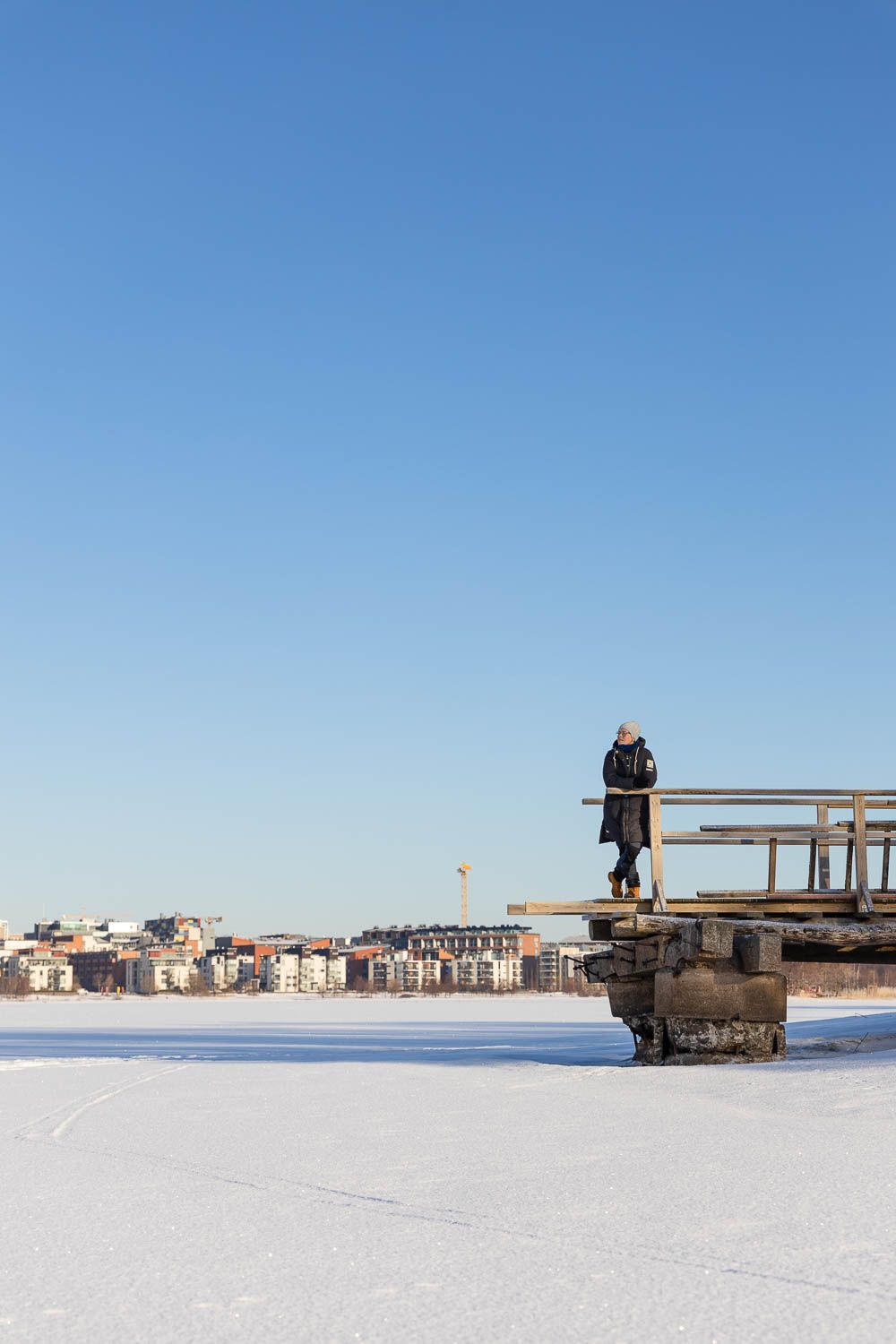 Perjantaina heräämme klo 5:40, pakkaamme kamerat reppuihin ja pukeudumme lämpimästi. Ulkona on kahdeksan astetta pakkasta. Ehdimme Helsingin Lammassaaren pitkospuille juuri, kun aurinko on nousemassa. Taivaanranta hehkuu kaislikon takana oranssinpunaisena, pesintäpuuhissa olevat tirpat laulavat ruovikossa. Taustalla kohisee vaimea aamuruuhka. Siellä ne ajavat työpaikoilleen, muut suorittajat. Meillä ei ole kiire.