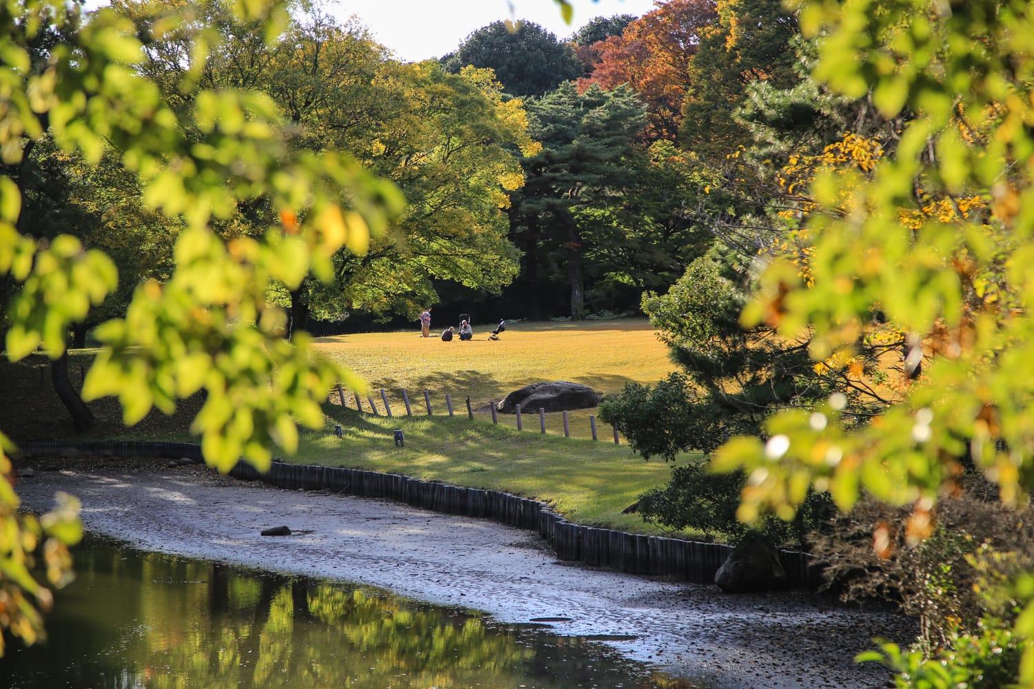 Yoyogi-puistossa tunnelma rauhoittui entisestään. Kävelimme suoraan vanhojen lehtipuiden syliin ja puistotielle, jota vanhat japanilaiset lyhdyt reunustivat. Kävelimme myös kyudo-keskuksen ohi, jossa perinteistä jousiammuntaa harrastavat tokiolaiset kokoontuvat viikonloppuisin. Yoyogissa on myös isoja nurmialueita ja muutama lampi, joissa on kiva seurata lintujen touhuja. Kevään kirsikankukkien aikaan Yoyogi on taatusti upea, mutta hienon väriloiston tarjosi ruskakin.