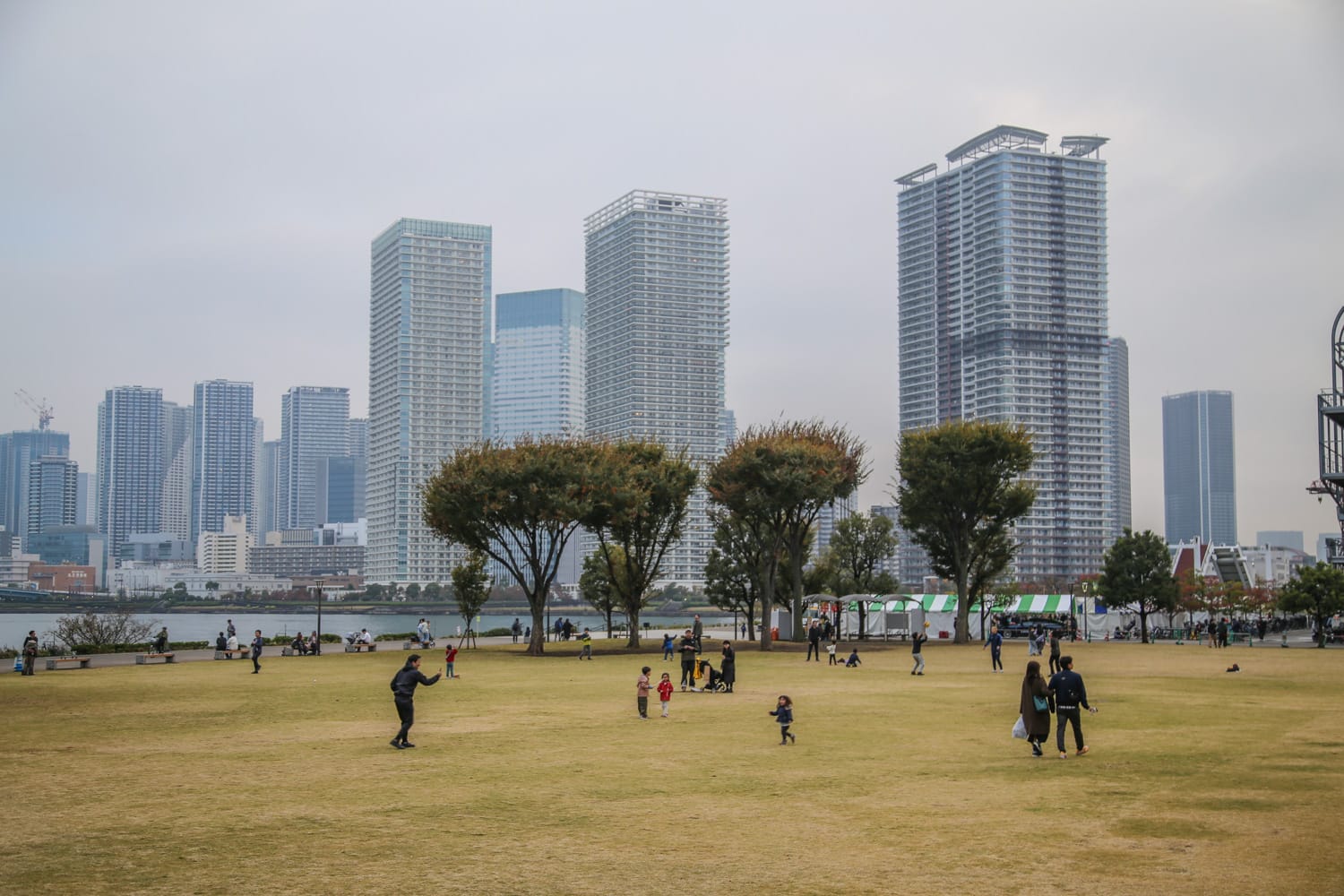Toyosu on kiva kohde, jossa saa hujahtamaan helposti päivän. Vanhalle täyttömaalle rakennettu alue oli ennen telakoiden, voimalaitosten ja erilaisten varastojen käytössä, mutta 2000-luvulla se koki muodonmuutoksen viihteen keskukseksi. Meille maisema Toyosusta keskustan suuntaan toi mieleen Manhattanin, sillä koko ranta on reunustettu pilvenpiirtäjillä. Tekosaarella on myös kivoja puistoja (kuten Toyosu Park), jonne moni tulee viettämään vapaapäivää hyvällä säällä.
