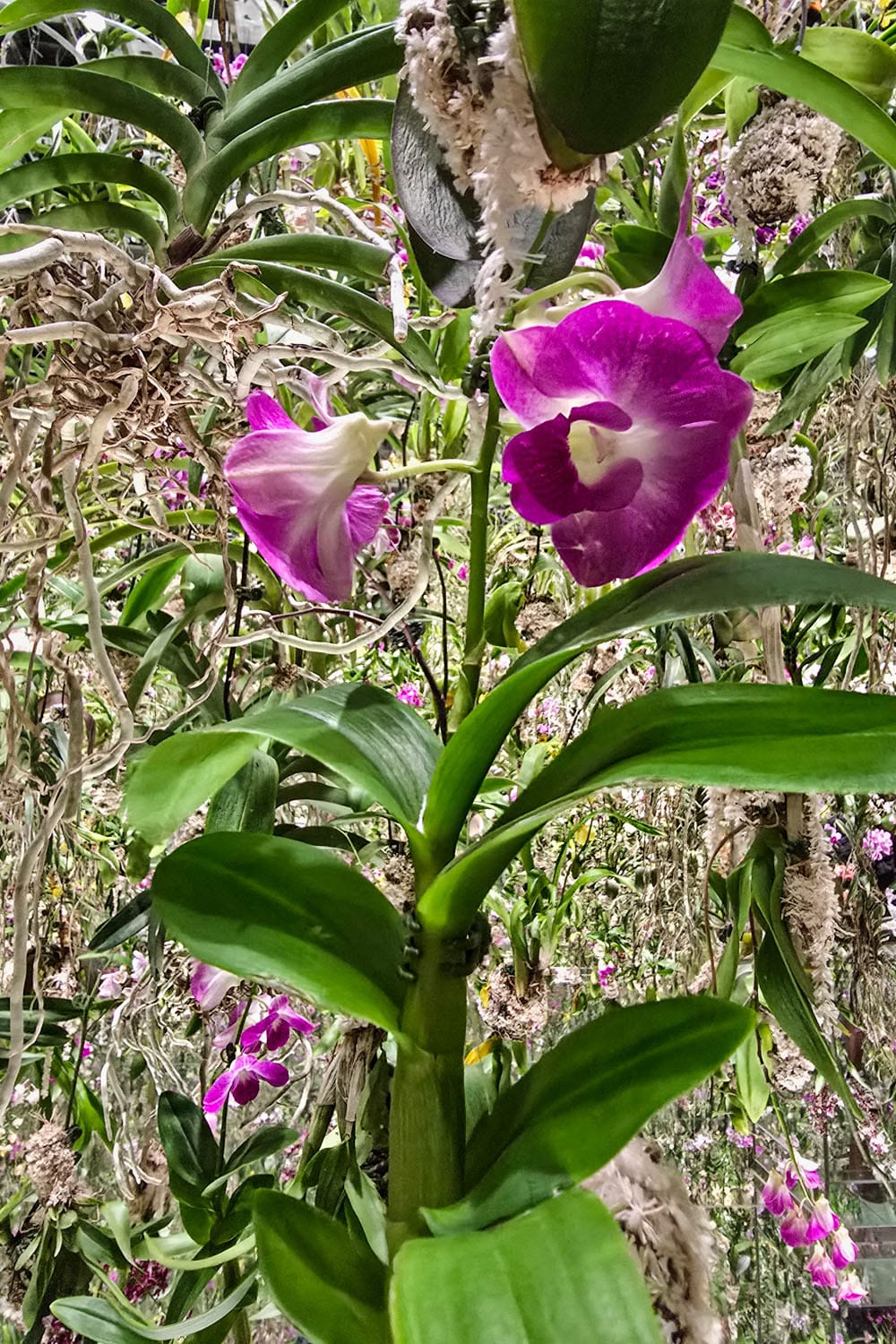 Kahlaus ihan oikeassa vedessä, jossa ui valokaloja (vas.). Oikealla puolella huikea kukkainstallaatio.