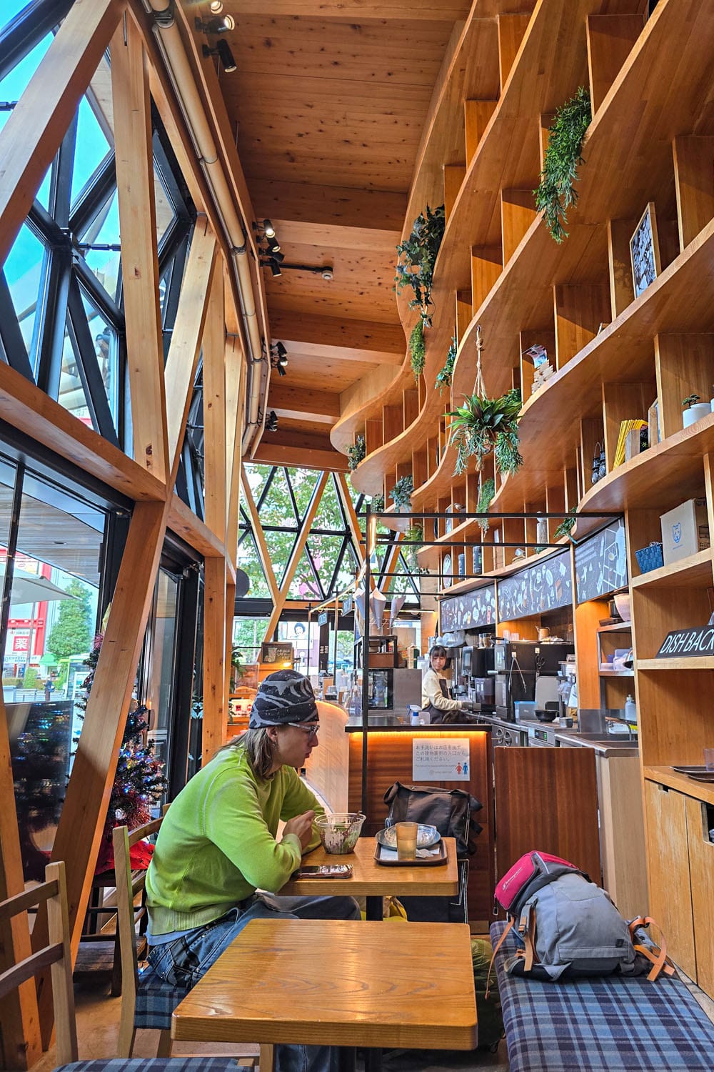 Toinen ihan kiva aamiaispaikka löytyi Ikebukuron Nishi-guchi-puiston laidalta. Global Ring Cafén arkkitehtuuri tuo mieleen skandinaavisen muotokielen: valoa ja puuta on käytetty sisustuksessa paljon. Kahvilan menu on lopulta suht suppea, mutta täältä saa aamiaista vaikka koko päivän, ja lounaita myös. Me söimme täytetyt voileivät, tuoremehua ja erikoiskahvit. Neljän hengen appeet maksoivat noin 30 euroa.