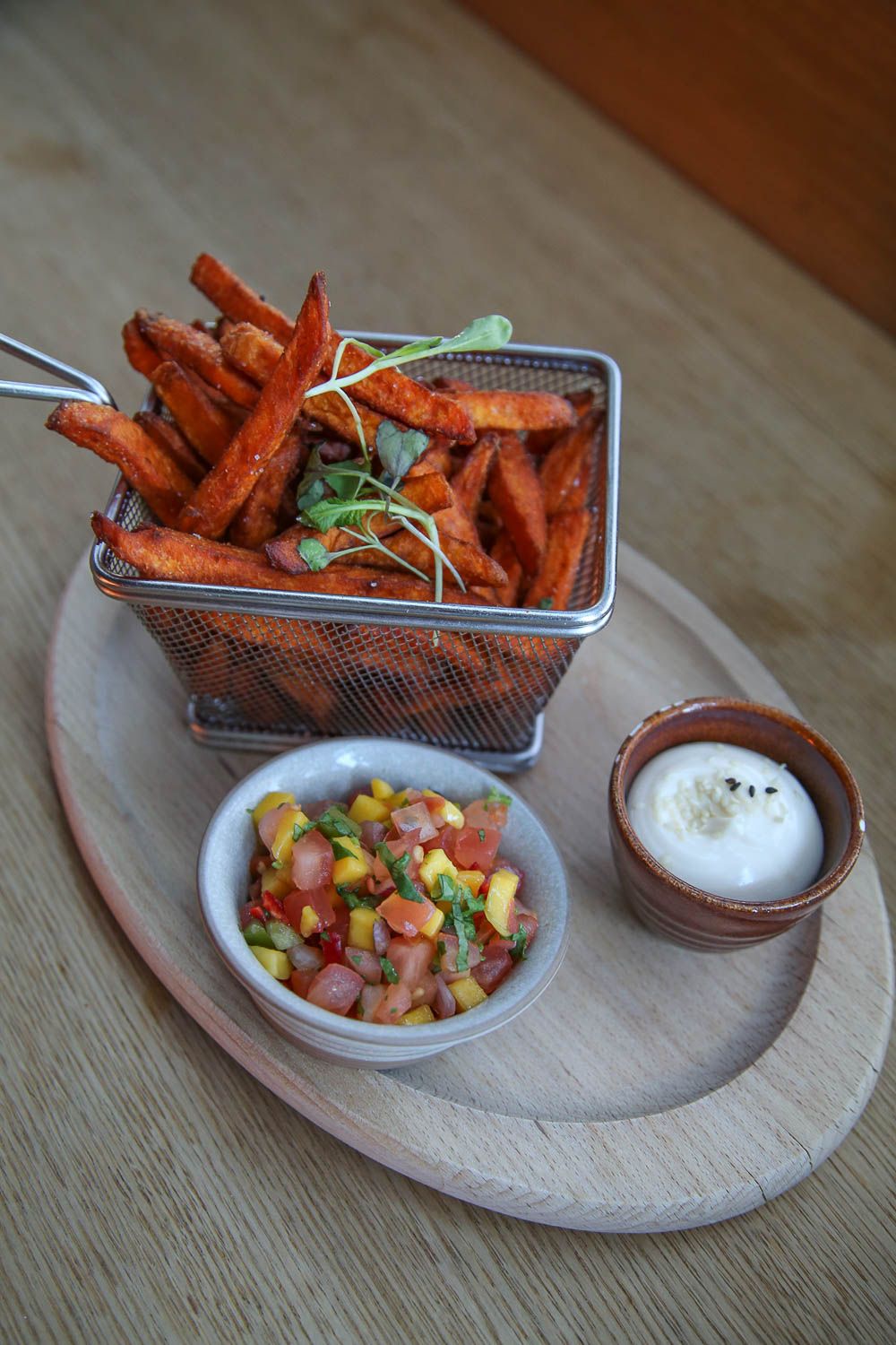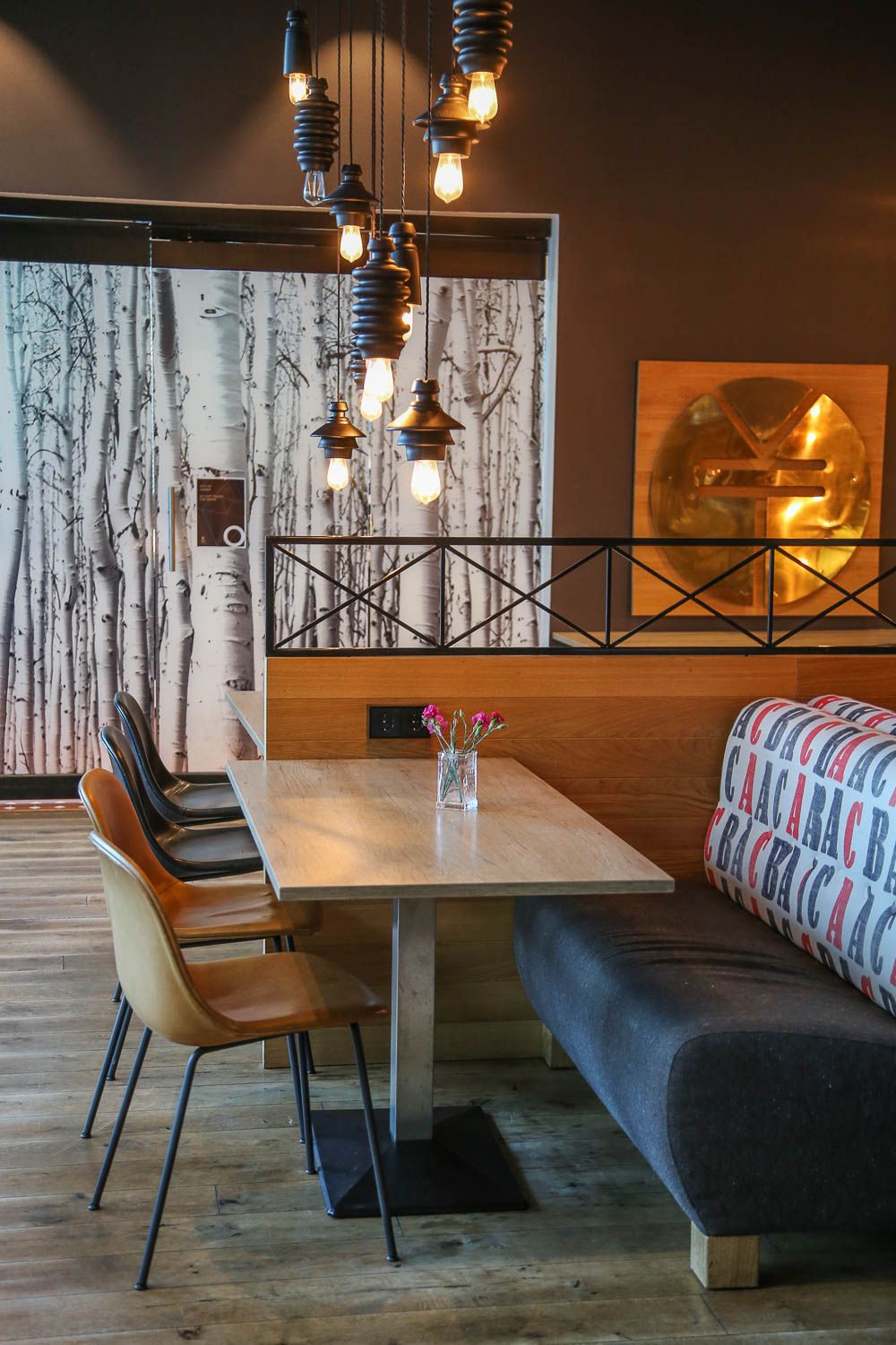 Lentokentän suuntaan tulee lähdettyä yleensä vain reissun yhteydessä. Tästä lähtien meinaan ajella tänne useamminkin, sillä kentän vieressä on Clarion Aviapolis -hotelli ja sen yhteydessä tyylikäs Kitchen & Table. Ravintolan konsepti on ruotsalaisen huippukokin, Marcus Samuelssonin käsialaa. Lista on yhdistelmä New Yorkin makuja yhdistettyinä pohjoisen perinteisiin, mutta rennolla tvistillä. Täällä ei tarvitse siis pönöttää, vaikka puitteet ovatkin komeat. Tilasimme raikkaalla inkiväärillä ryyditetyt mocktailit ja jaettaviksi annoksiksi snacks-listalta kanaa mangosalsalla ja majoneesilla, täydellisiä bataattiranuja ja nachoja. Simppeliltä listalta löytyy purilaisten lisäksi mm. kevätsalaattia parsan, kananmunan, sitrusvinaigretten ja chimichurrilla maustetun kanan tai savustetun lohen kera. Jälkkäreistä bongasin tietysti heti juustokakun ja brownien, mutta niiden kokeilu jäi seuraavaan kertaan. Kaikki pääruuat olivat alle 20 euroa.