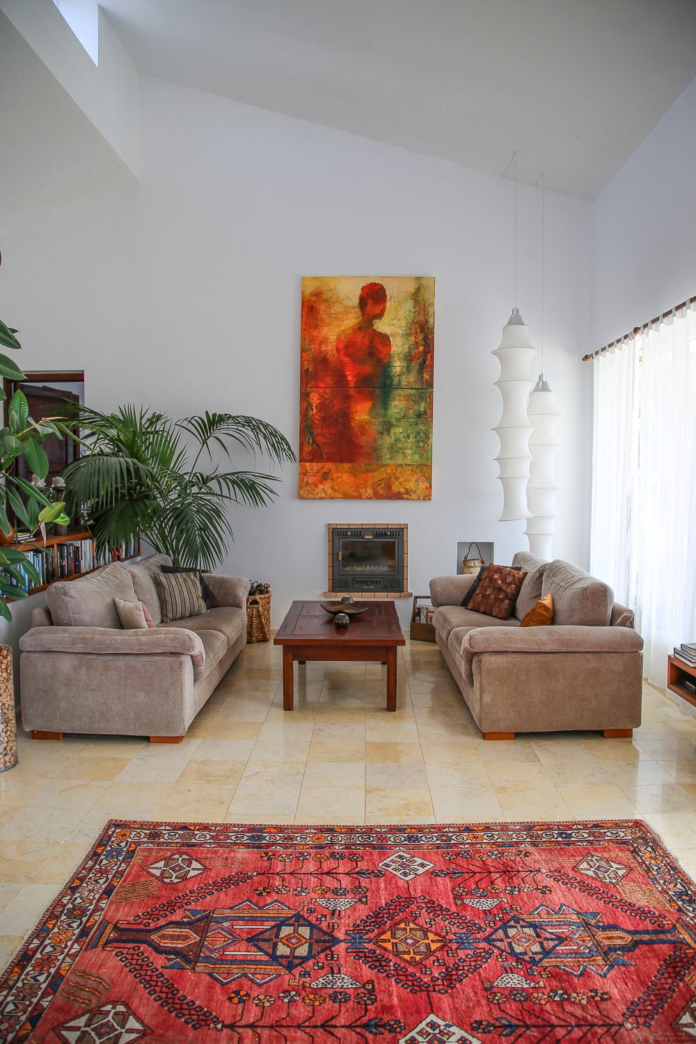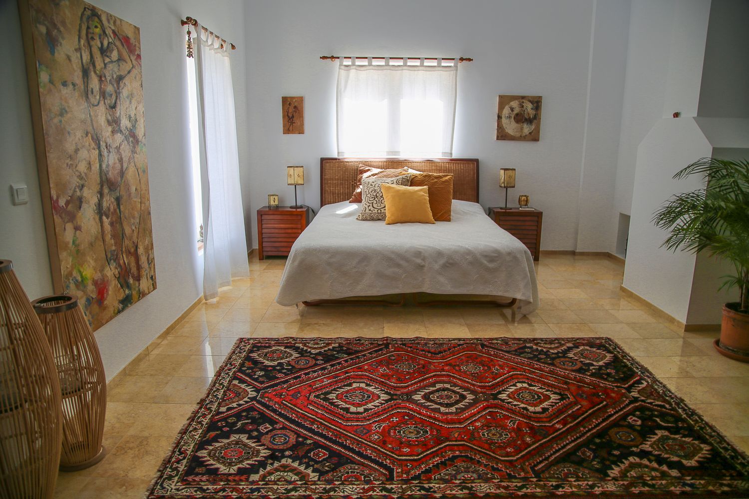 No, sisustushan on Casa Karinassa tietenkin ihan pelkkää silmäkarkkia: laadukkaita huonekaluja, värikkäitä tauluja ja itämaisia mattoja. 175-neliöisessä talossa on kolme makuuhuonetta ja kaksi kylpyhuonetta. Kaikkiaan tänne majoittuu kuusi yöpyjää.
