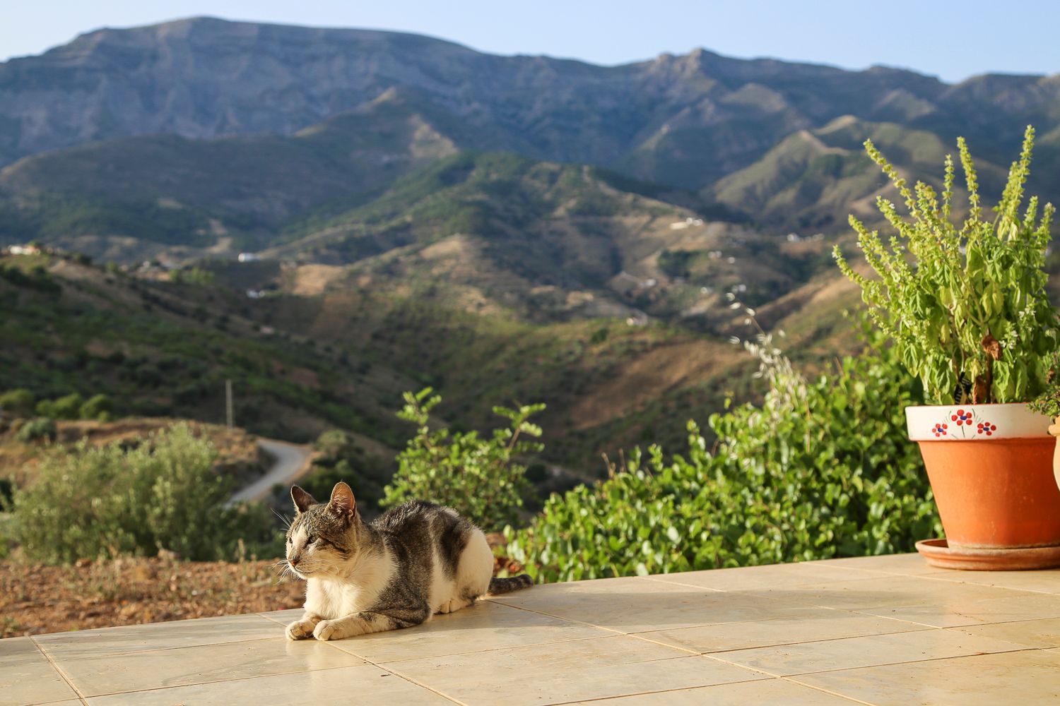 Lahdenväylän kupeessa asuvalle täydellisen kohinaton ja hiljainen miljöö on aina pieni ihme. Espanjan maaseudulla hiljaisuus on ehdottomasti suurinta luksusta. Jotenkin ympäröivät vuoret eristävät ääntä niin, että täällä seurana on enimmäkseen pelkkä tuulen humina. Hämmästytti, että lentokoneiden melukin puuttui, vaikka Malagaan on niin lyhyt matka. Äänimaisema muodostui lähinnä vuohenkelloista, kiekuvista kukoista ja iltaisin haukkuvista koirista.
