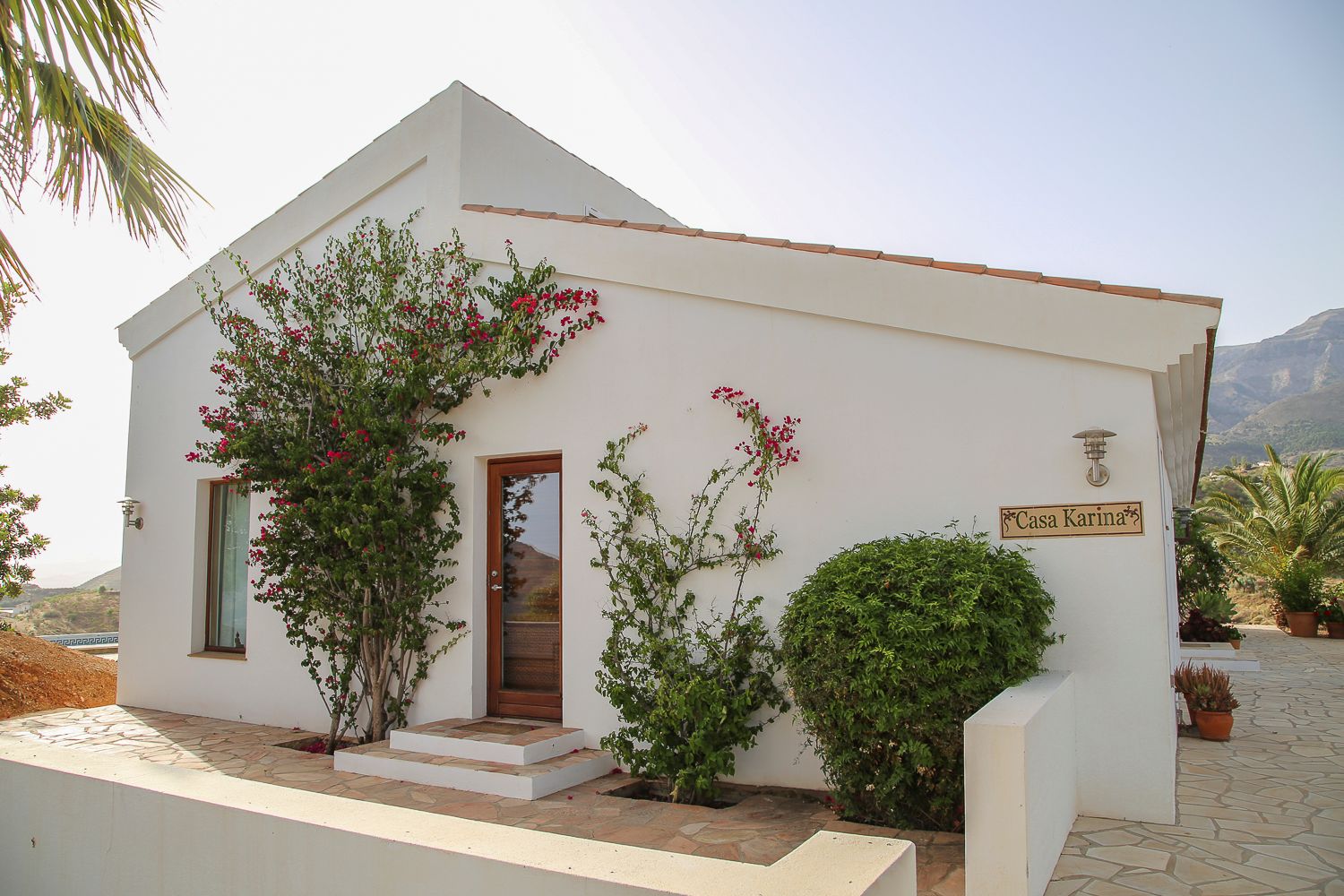 Casa Karina sijaitsee serpentiinitien päässä, jyrkän mäen päällä. Lähimmät naapurit ovat vajaan puolen kilometrin päässä alempana laaksossa eli paikka on todella yksityinen. Talo on tanskalaispariskunnan rakennuttama ja eroaa selvästi perinteisestä espanjalaisesta arkkitehtuurista: se on tyyliltään yksinkertaisempi. Ikkunat ovat isot eikä niissä ole kaltereita näkymää pilaamassa.