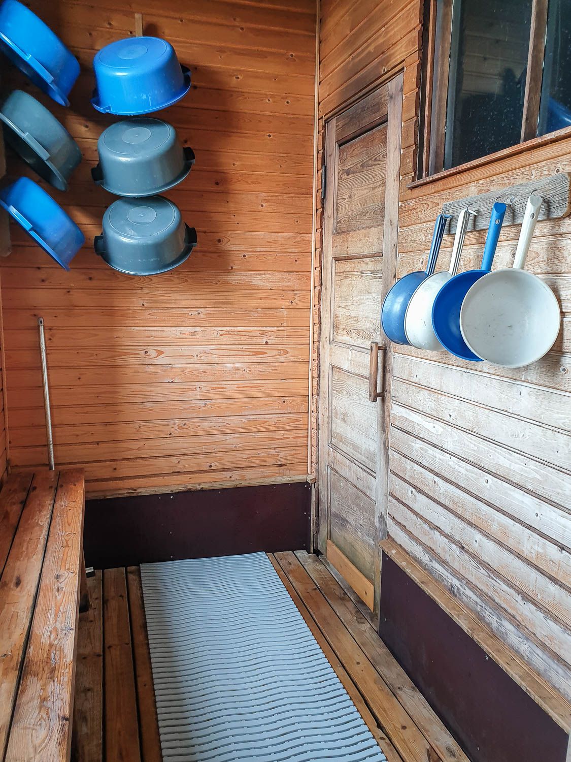 Jokaiselle majakan yöpyjälle oli varattuna noin tunnin saunavuoro, joka meni kyllä aivan liian äkkiä. Tämä on muuten usein tyypillinen haaste muissakin majapaikoissa: saunassa kuuluisi rauhoittua ja istuskella kiireettömästi, mutta mekin ehdimme heittää vain parit löylyt ja käydä kerran vilvoittelemassa pihalla. Toki tilanne on ymmärrettävä: käytössä on vain yksi sauna ja kaikkien pitäisi ehtiä saman illan aikana lauteille.